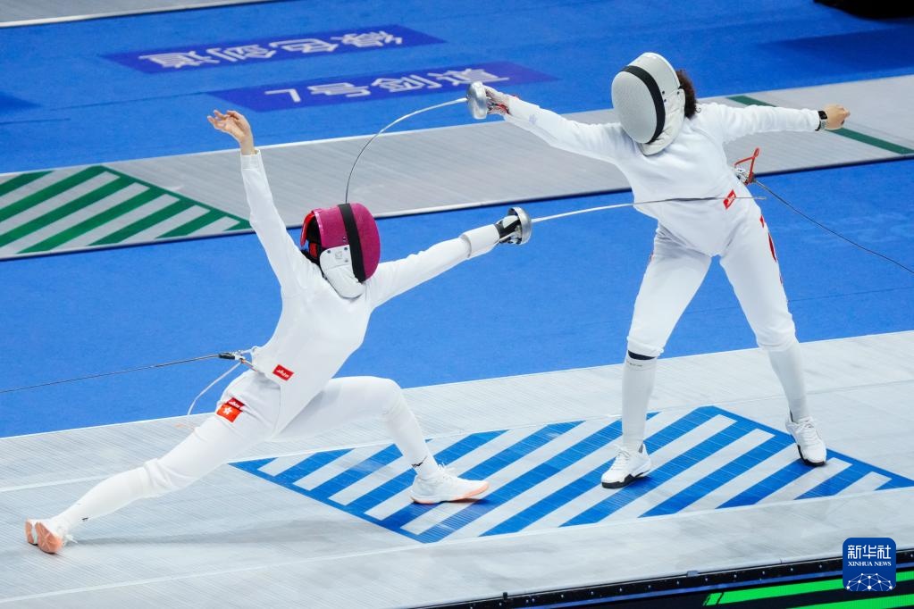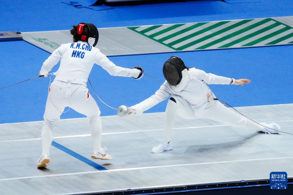 11月18日,北京队选手梁馨艺(右)和香港队选手佘缮妡在比赛中。