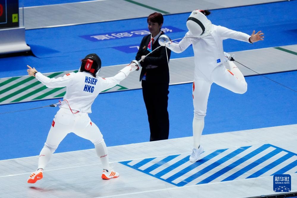 11月18日,北京队选手邢瑶(右)和香港队选手吴海谛在比赛中。