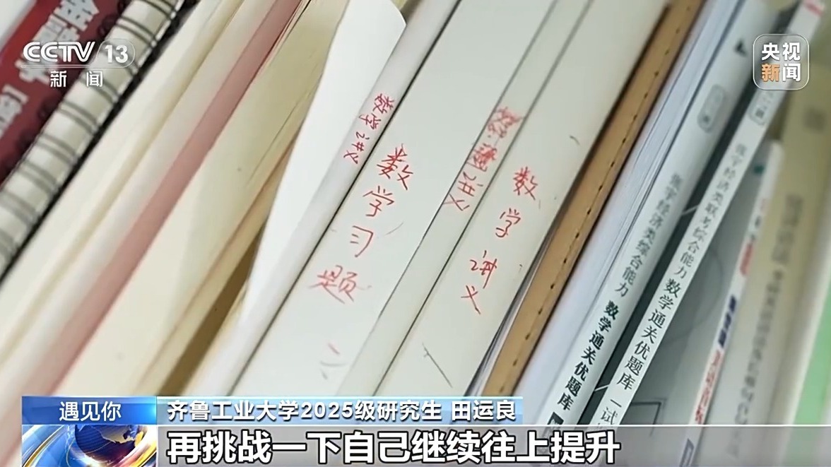 齐鲁工业大学2025级研究生 田运良:查成绩那一段时间就是很消沉。我说我可能真不行,我不想再考了。然后我孩子说,爸爸你要放弃了吗。这一句话就把我激起来,不能放弃。一开始你定的目标是陪着孩子学习,忽然一下子你就临阵脱逃了,是那种感觉。