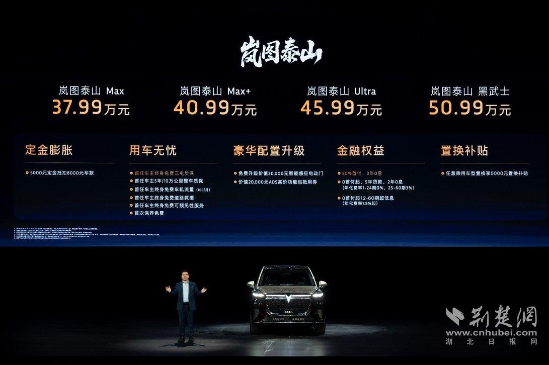 11月18日,主题为“争峰”的岚图泰山上市发布会在深圳举行。新车共推出Max版、Max+版、Ultra版、黑武士版四个版型,官方指导价为37.99万元-50.99万元。同时,还公布了价值48000元的上市首销期限时权益,以及包括专属交付礼遇、积分增值回馈、购置税无忧保障在内的尊享计划。岚图泰山背靠东风56年造车底蕴,是岚图顶级整车技术与华为智能科技的集大成者,与其它中国旗舰SUV一同“争峰”豪华大六座SUV市场。