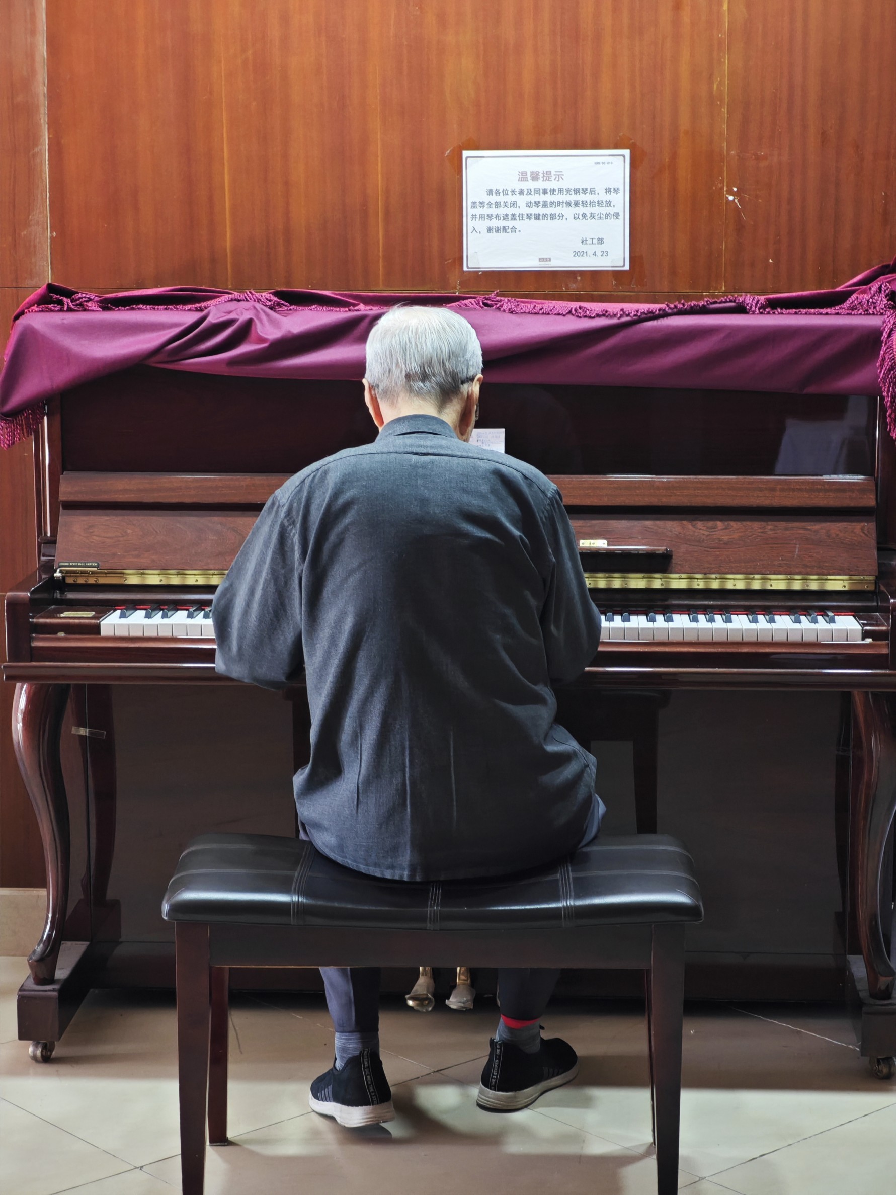 老人正在弹钢琴。人民网记者 王天乐摄
