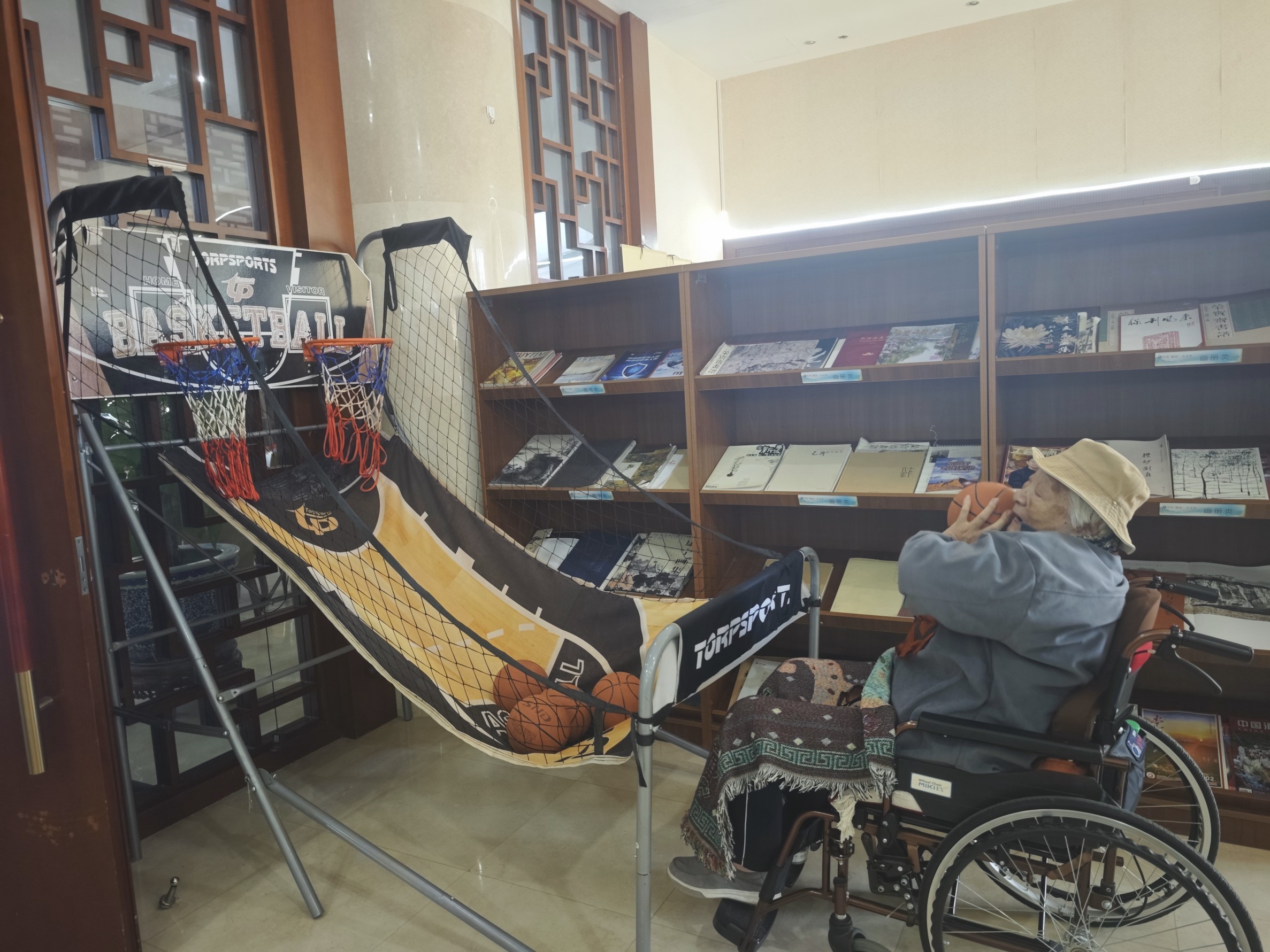 老人正在玩投篮游戏进行锻炼。人民网记者 车柯蒙摄