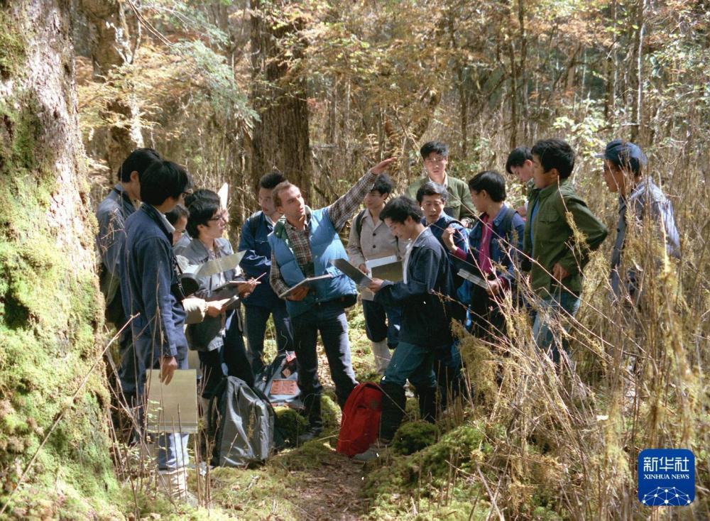 20世纪80年代,科研人员在卧龙自然保护区海拔2840米的二道坪,考察大熊猫的野外生存环境。新华社记者 金勖琪 摄