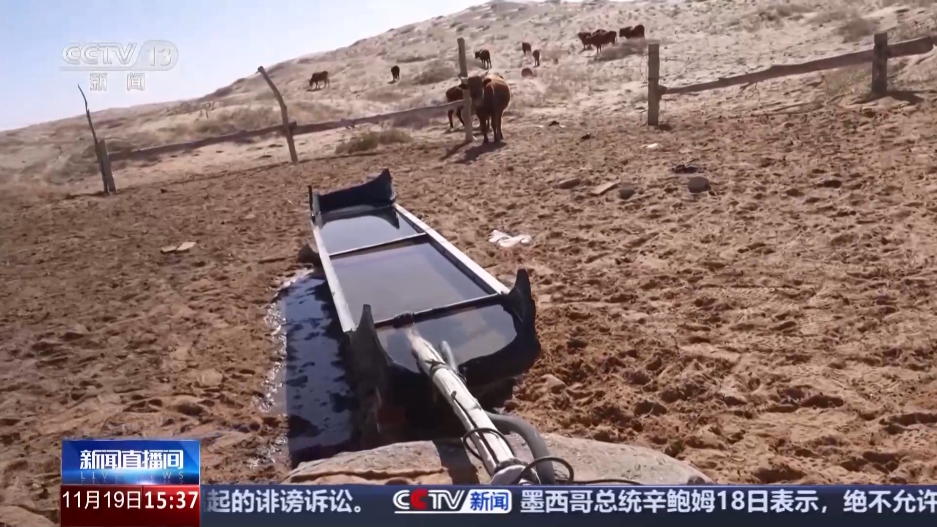 曾经,供水也是骆驼养殖过程中的一大难题。阿拉善右旗气候干旱,水源稀缺,传统饮水方式全靠牧民定期前往数十公里外的水源地,手动为骆驼补水,遇上水源枯竭或设备故障,还得额外花时间寻找新水源、维修工具,一年到头几乎没有空闲。智能饮水设备的出现,彻底解决了这个“老大难”问题。谢喜仁家的智能饮水设备安装在距离镇子40公里的牧场核心区,设备配备了水位传感器和远程控制系统,他通过手机软件就能实时查看槽内的水位,轻点屏幕就可以启动自动放水功能,确保水槽内水量充足。