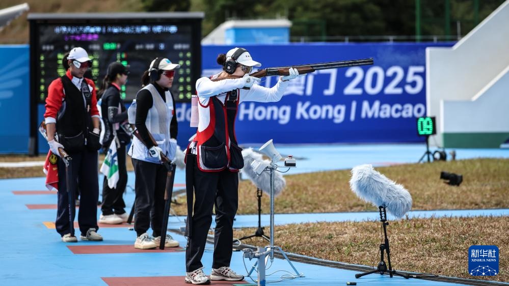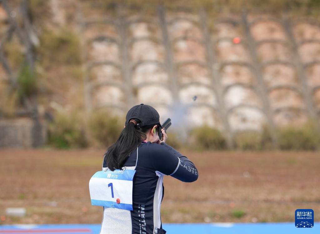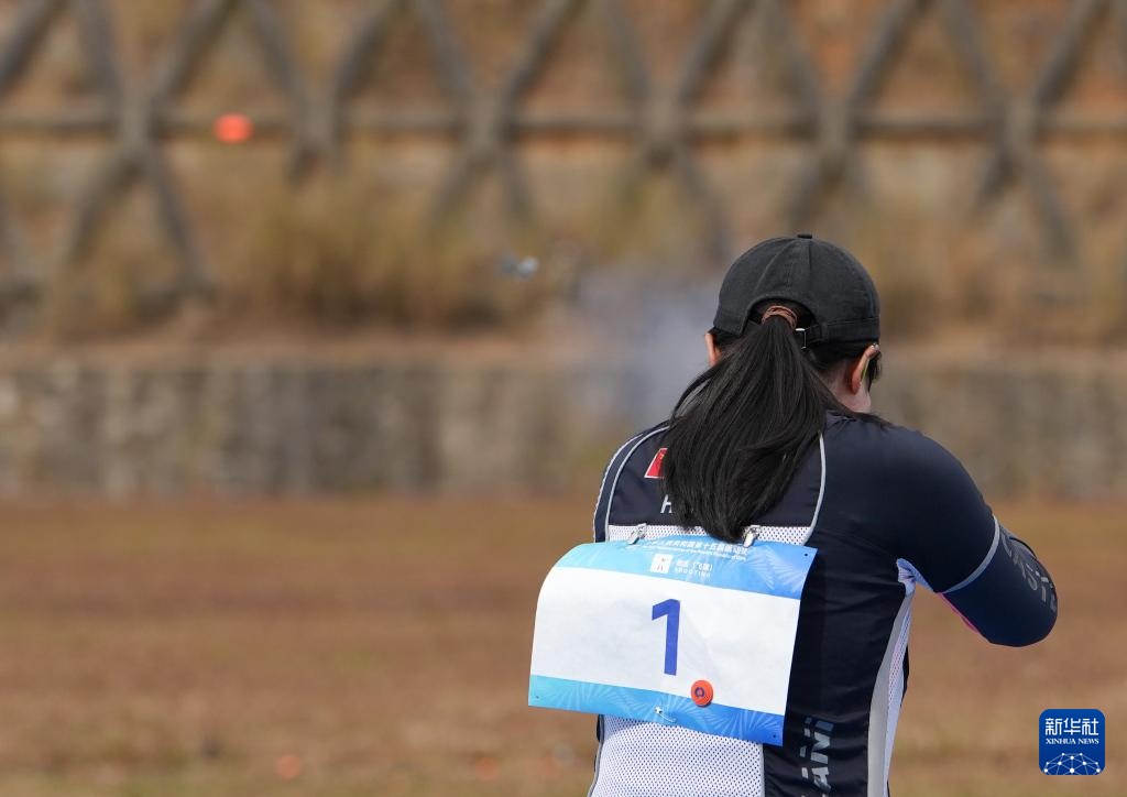 当日,第十五届全国运动会射击项目女子飞碟多向决赛在广州举行。