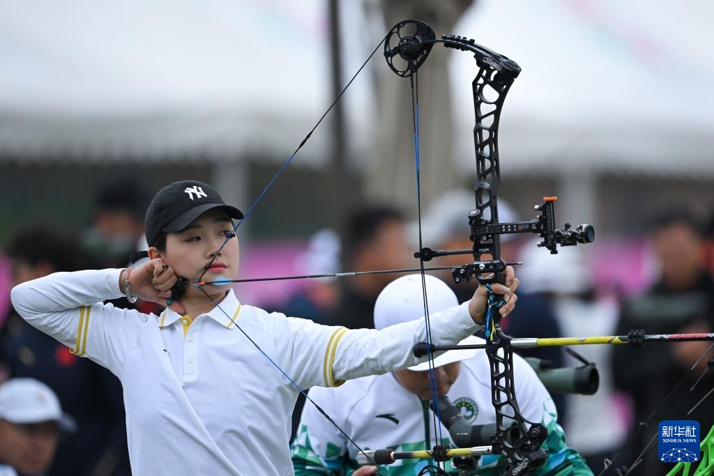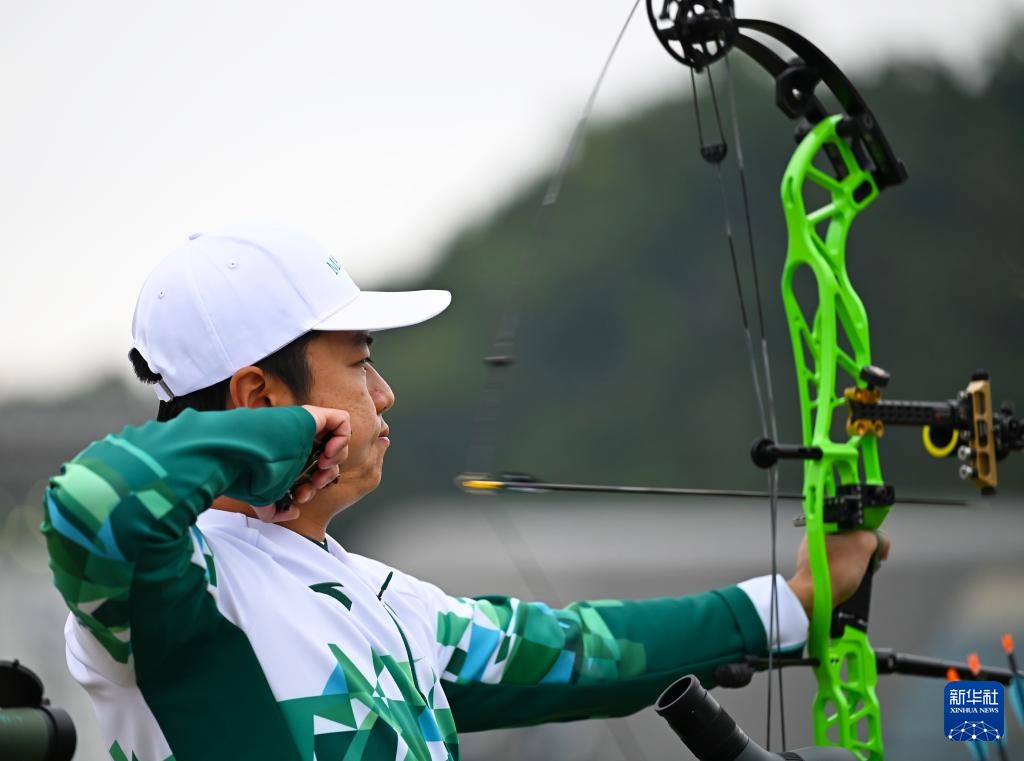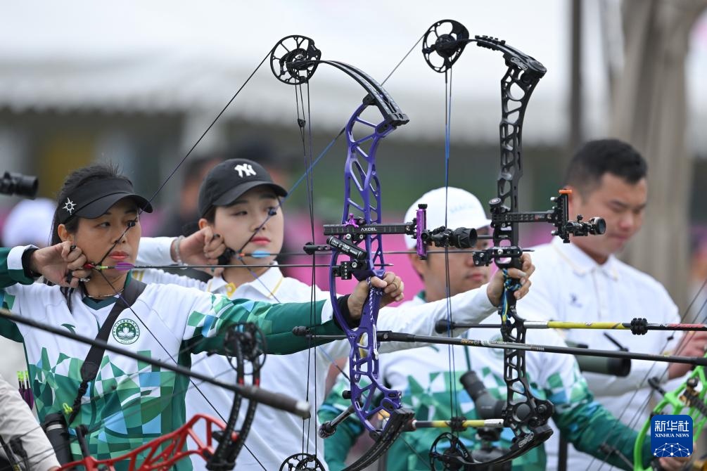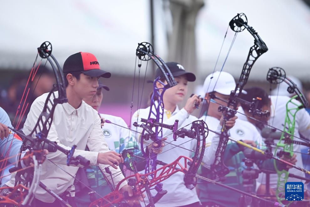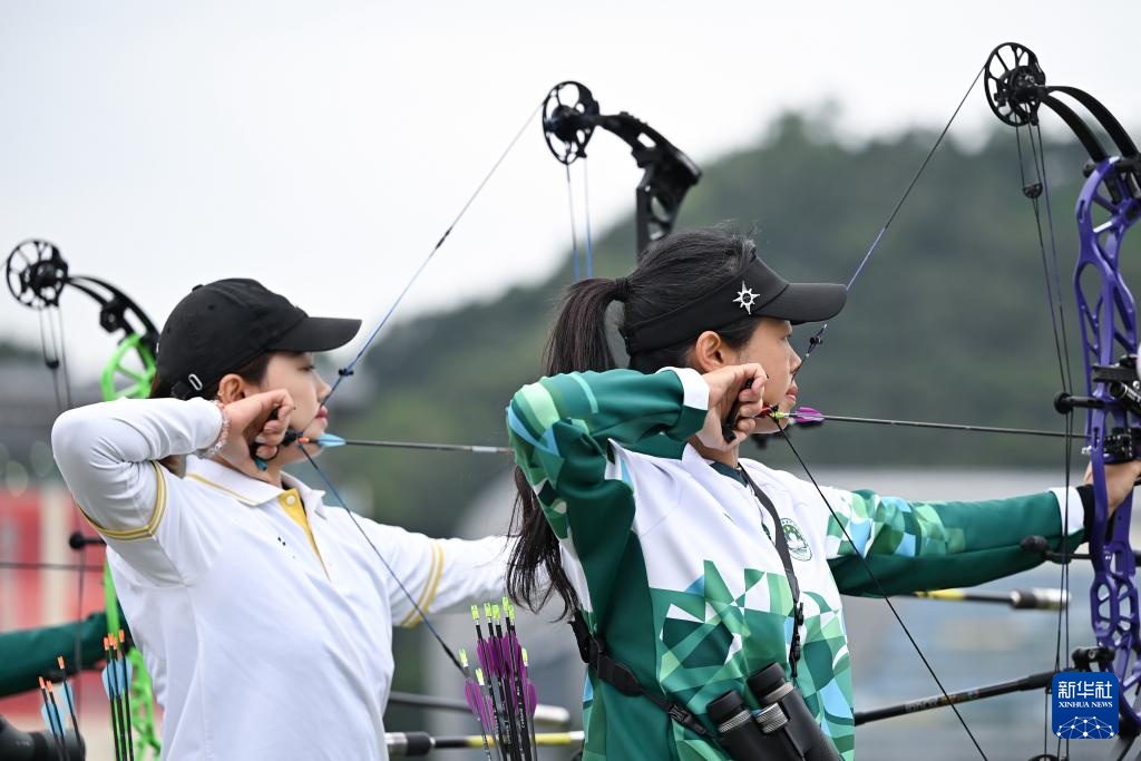 当日,第十五届全国运动会射箭项目复合弓混合团体排名赛在广东深圳举行。