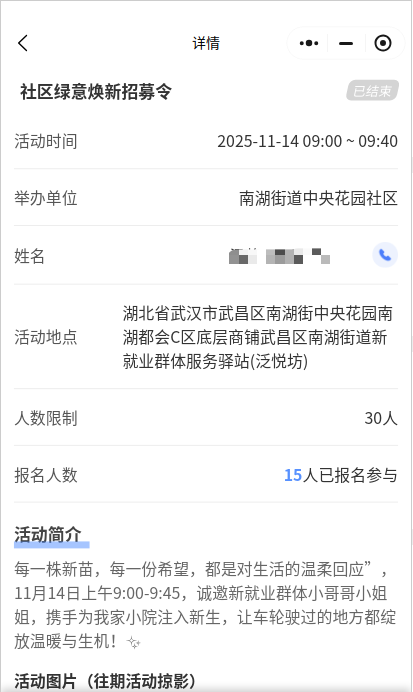 报名单位:武汉市武昌区南湖街道办事处中央花园社区
