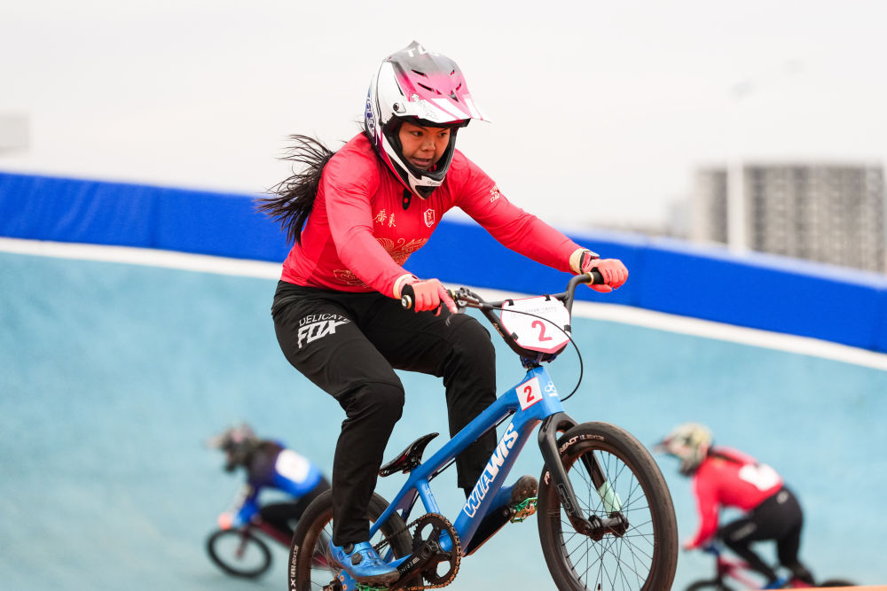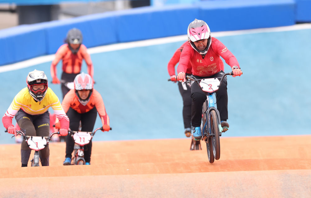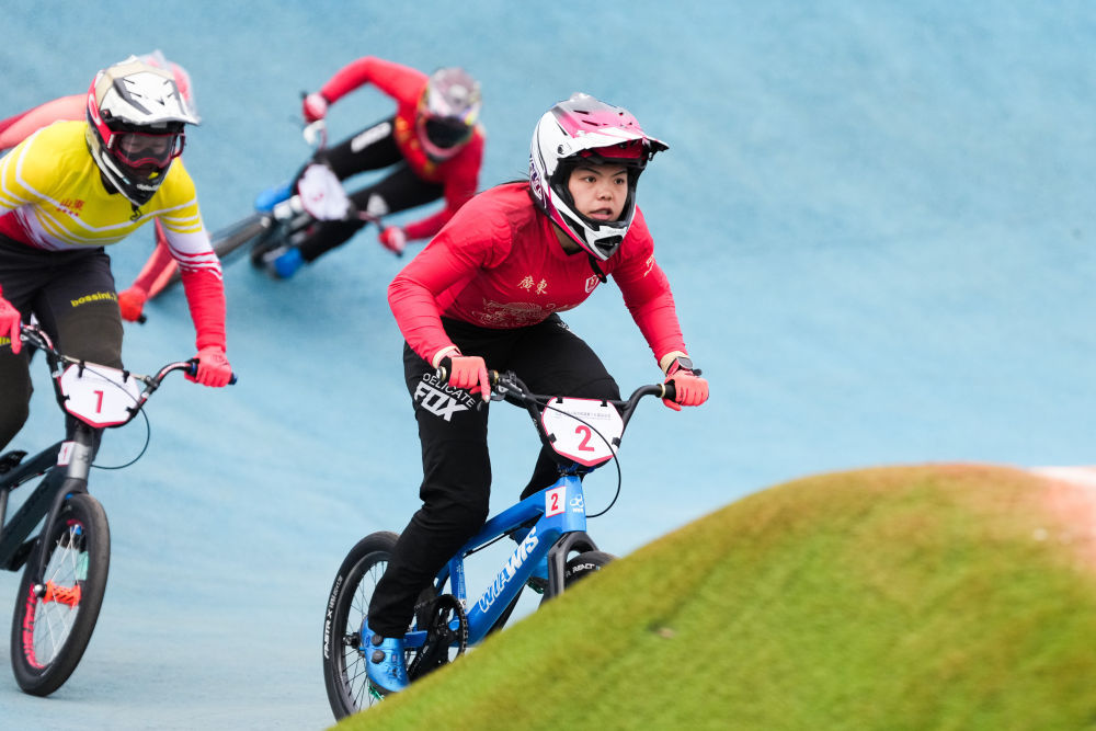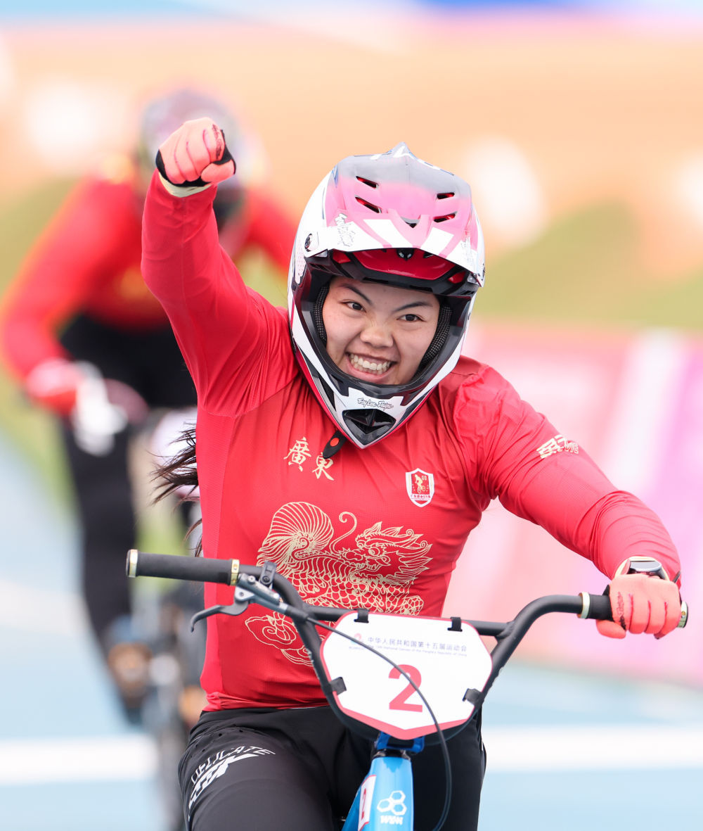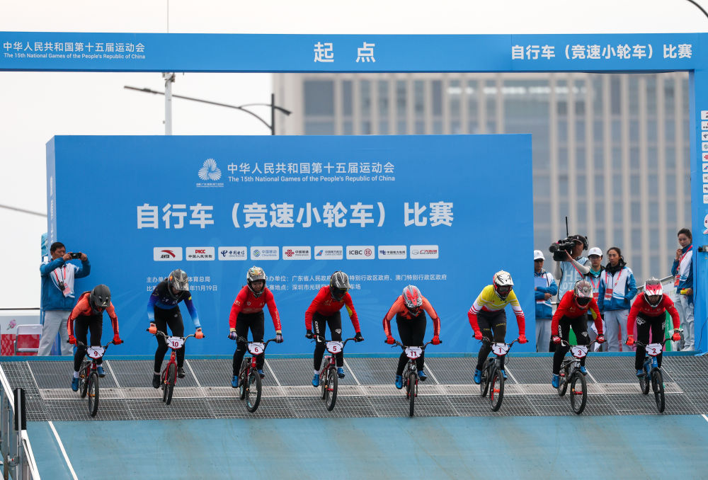 11月19日,在广东深圳举行的第十五届全国运动会竞速小轮车项目女子竞速赛决赛中,广东队选手廖婉仪获得冠军,山东队选手王梦瑶和浙江队选手顾权权分获亚军和季军。