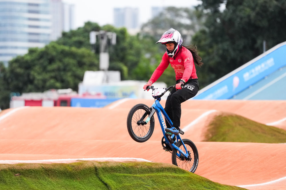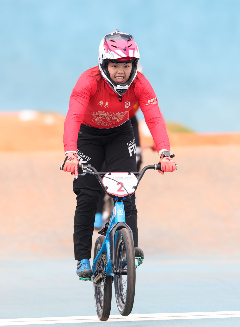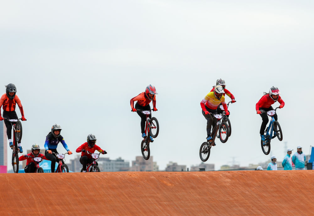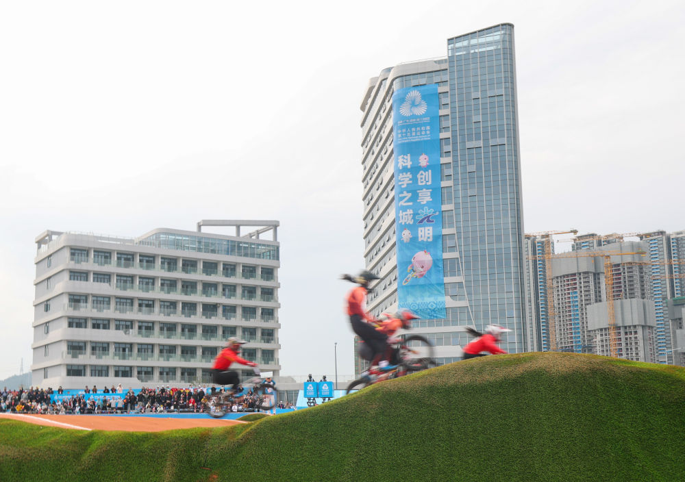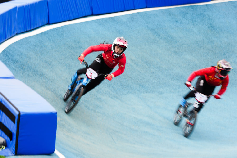 11月19日,在广东深圳举行的第十五届全国运动会竞速小轮车项目女子竞速赛决赛中,广东队选手廖婉仪获得冠军,山东队选手王梦瑶和浙江队选手顾权权分获亚军和季军。