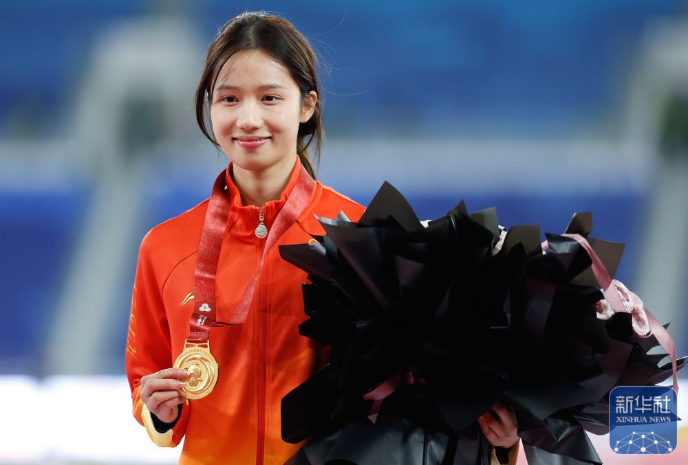 ↑ 获得冠军的湖北队选手邵雨琪在颁奖仪式上。 新华社记者 黄伟 摄