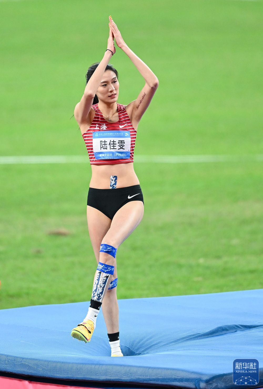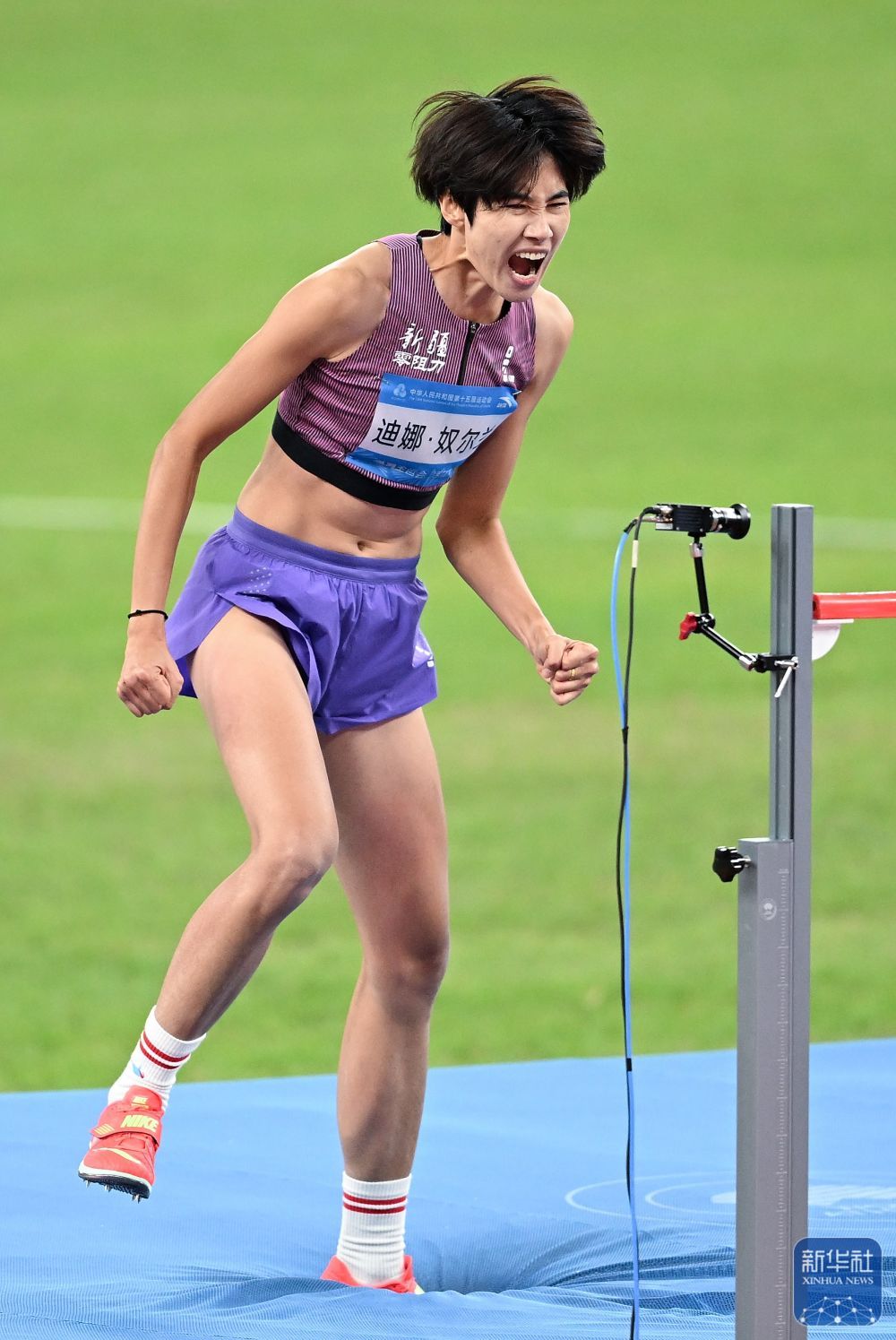 11月19日,第十五届全国运动会田径项目女子跳高决赛在广州举行。
