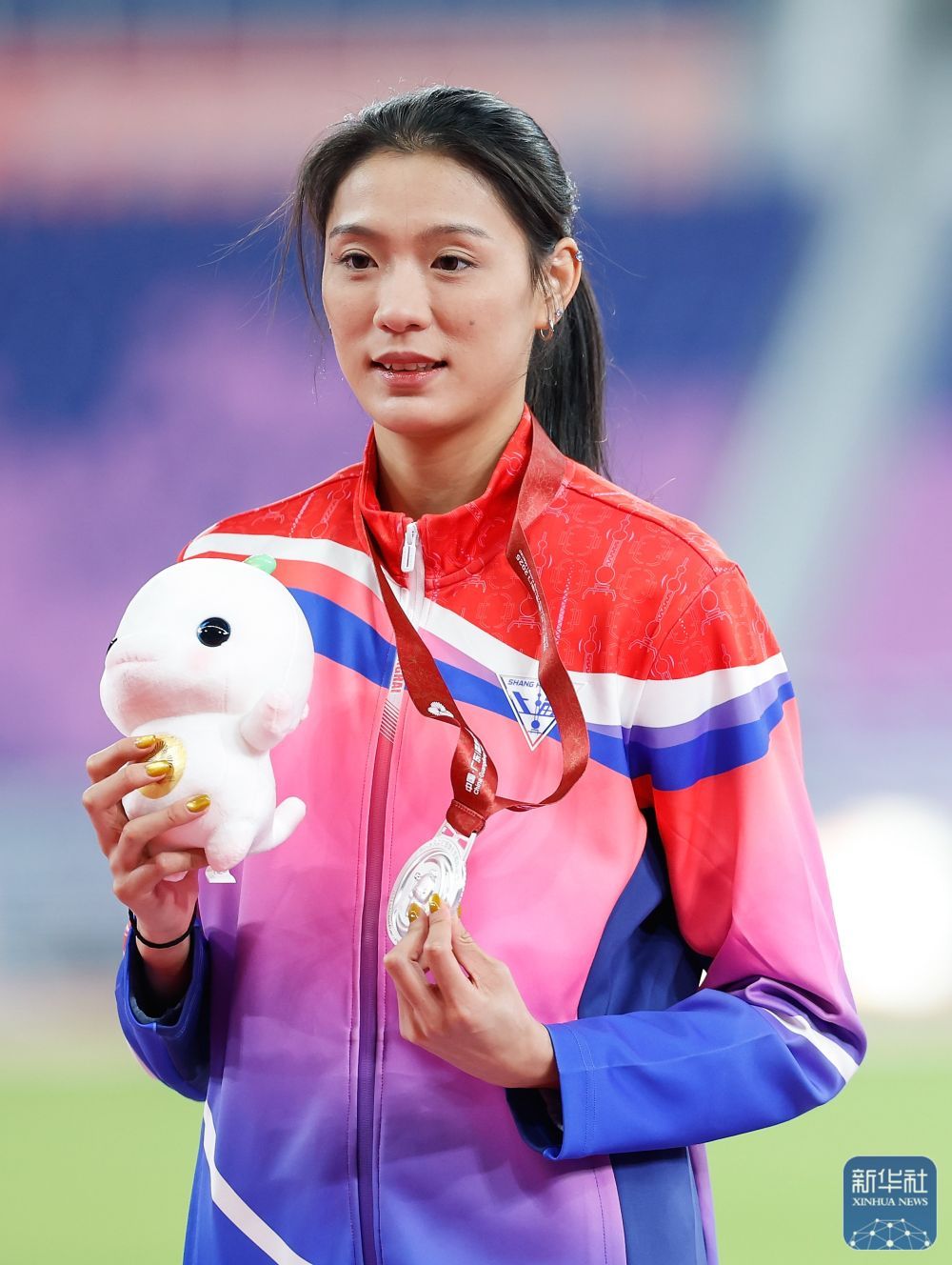 ↑ 获得亚军的上海队选手陆佳雯在颁奖仪式上。 新华社记者 黄伟 摄
