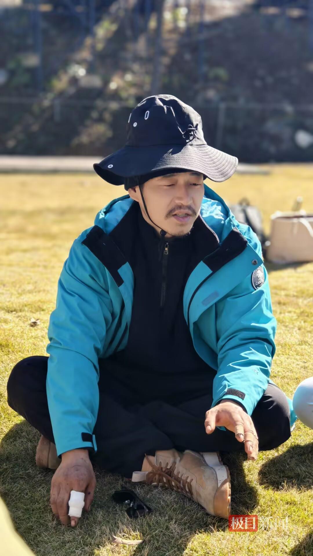 14名荒野求生选手游览七星山后,“文车车”躺在草坪上称想吃羊肉串喝啤酒