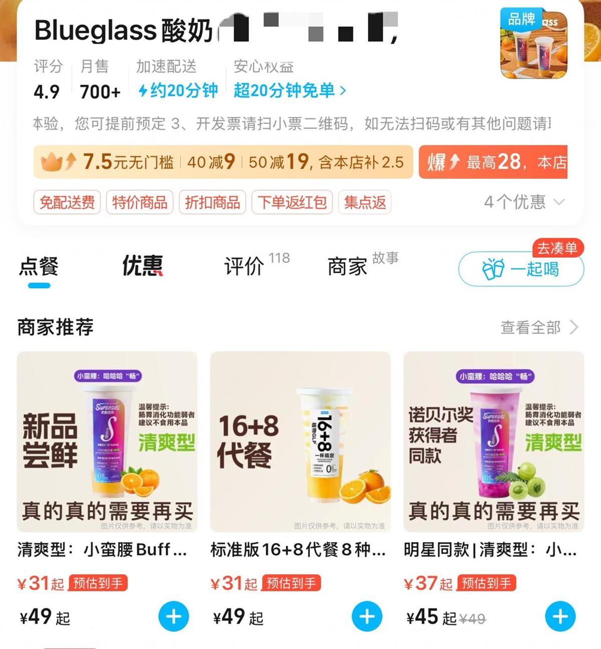 值得关注的是,就在本次被执行信息曝光前数日,Blueglass刚因“变相降价”受到讨论。11月17日,有媒体注意到其在部分外卖平台出现售价19.9元的产品,较线下原价降幅达60%。不过其官方客服随后回应称,小程序价格未变动,部分低价为平台补贴所致。