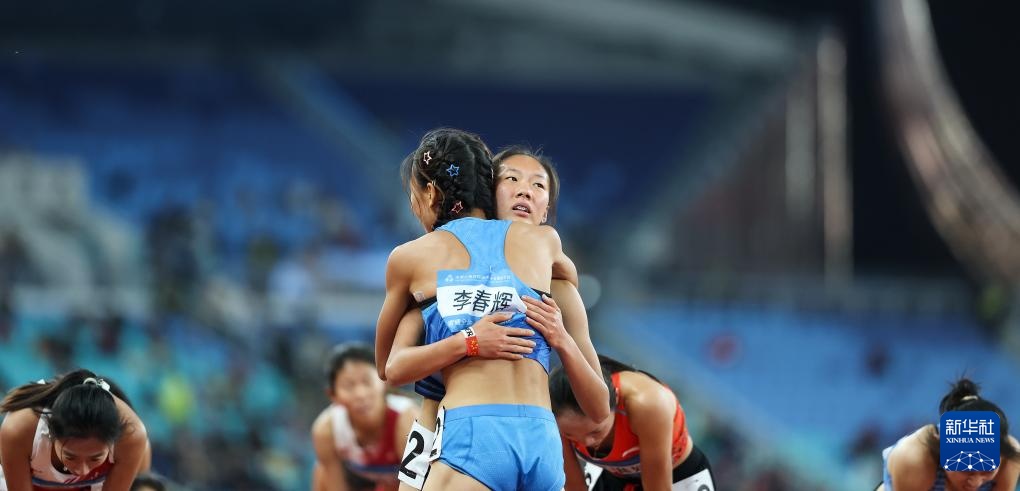 11月20日,吉林队选手李春辉(前)和四川队选手陈禹璇在比赛后拥抱。她们分别获得冠军和季军。