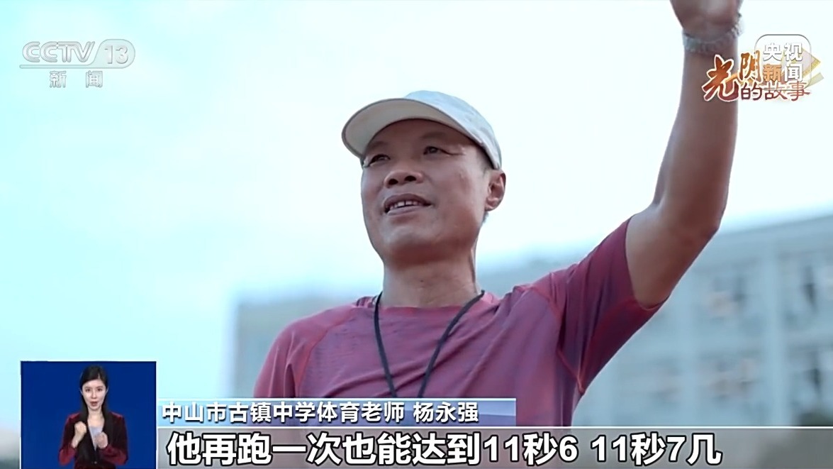 中山市古镇中学体育老师 杨永强:他跑了11秒7,以为是自己按错了,就叫他回去再跑一次,他再跑一次也能达到11秒6、11秒7。刚上初三就能跑进11秒多的,在我们学校长期以来是比较少的。