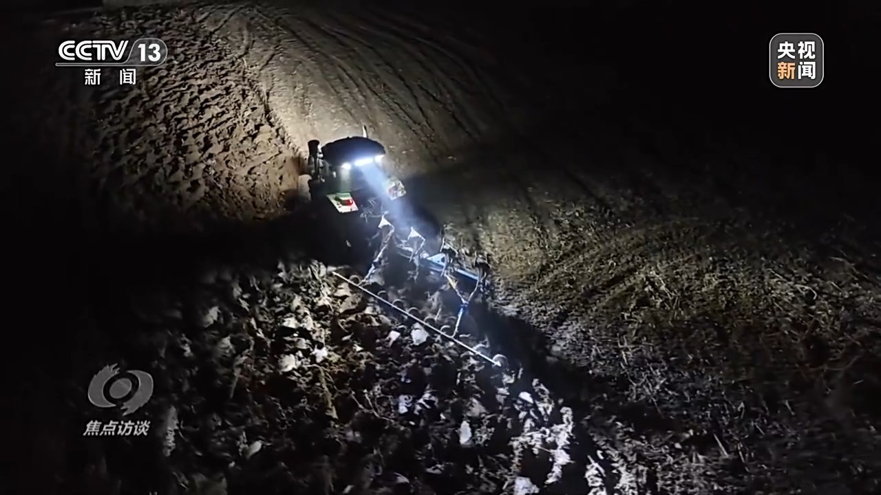 为了尽快把地块翻耕完,最大限度减少秋播推迟带来的影响,当地几乎所有的犁地机都在连夜作业,“换人不换马”。