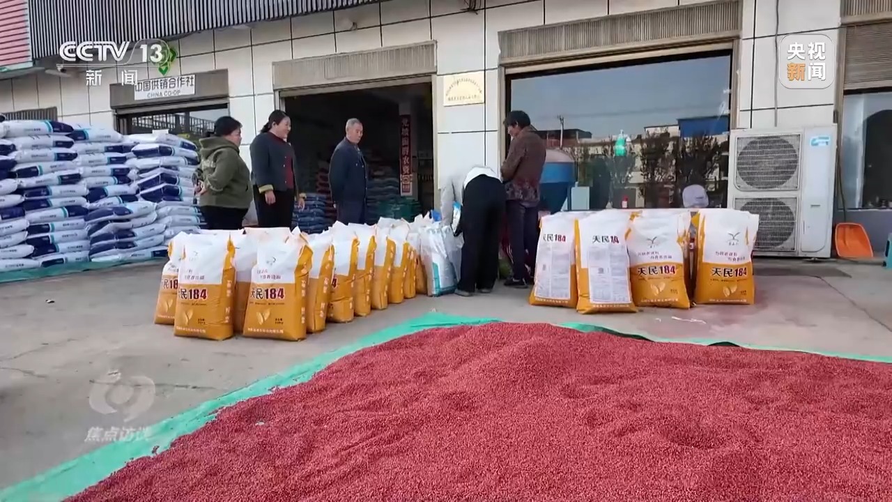 针对今年的特殊情况,当地还增加了一项措施,就是要给小麦种子裹上一层防病害的涂层,来应对晚播带来的更大可能的病虫害风险。各个种子销售点在出售种子时,就会帮农户们把防病害的涂层拌种好。