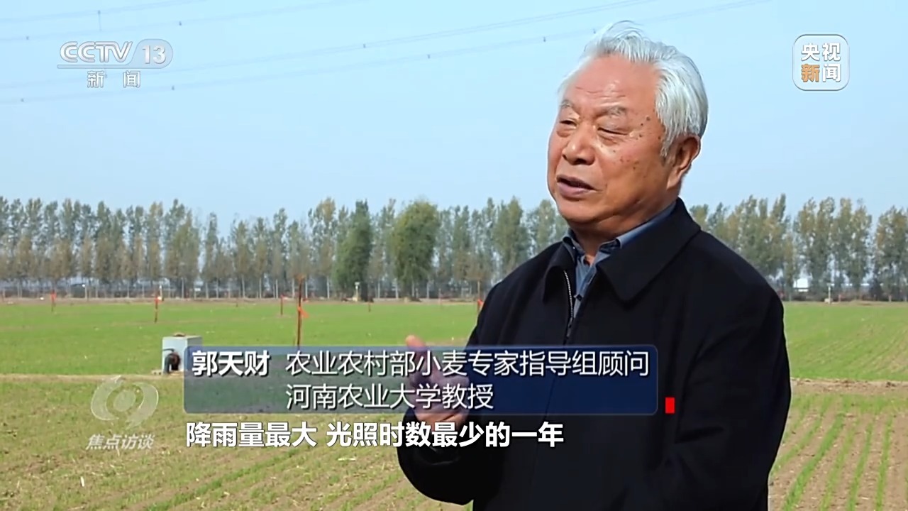 农业农村部小麦专家指导组顾问、河南农业大学教授 郭天财:气象部门统计数据是1961年以来,降雨持续日数最长,降雨量最大,光照时数最少的一年,都是破了历史极值,导致今年河南秋作物收获期推迟,腾茬推迟,整地推迟,播种推迟,小麦大面积晚播。往年河南大约10月上旬大面积播种就开始了,今年10月24日全省麦播才开始,比往年晚了10到15天。