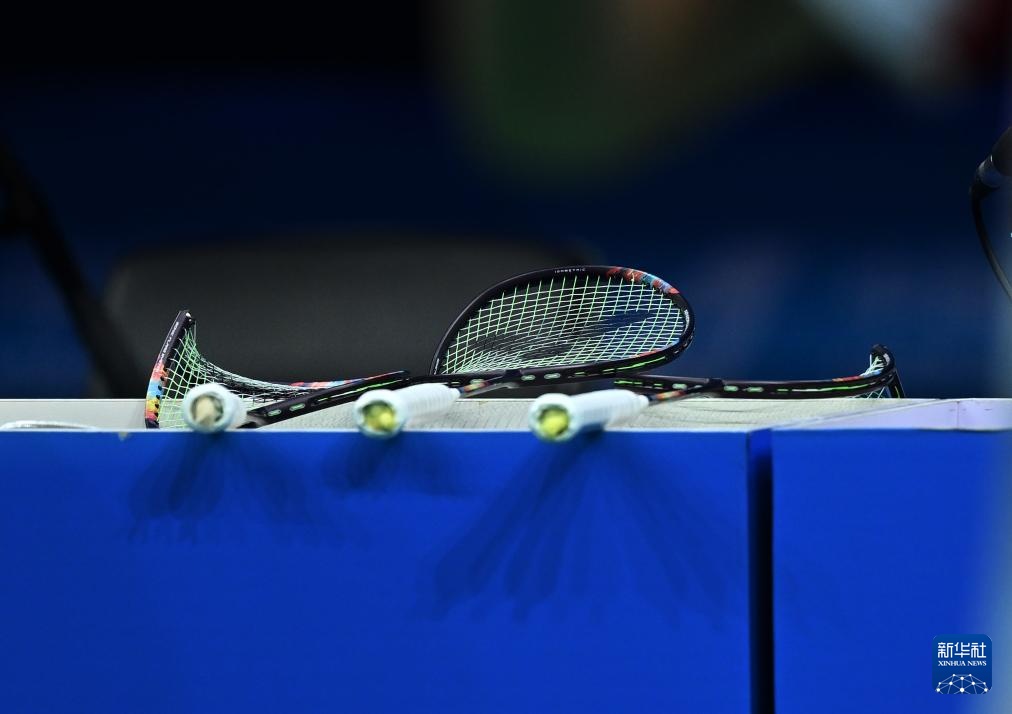 这是11月20日拍摄的安徽队组合在比赛中使用过的球拍。