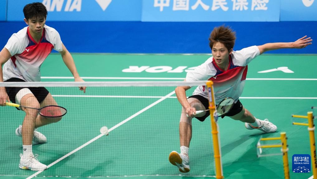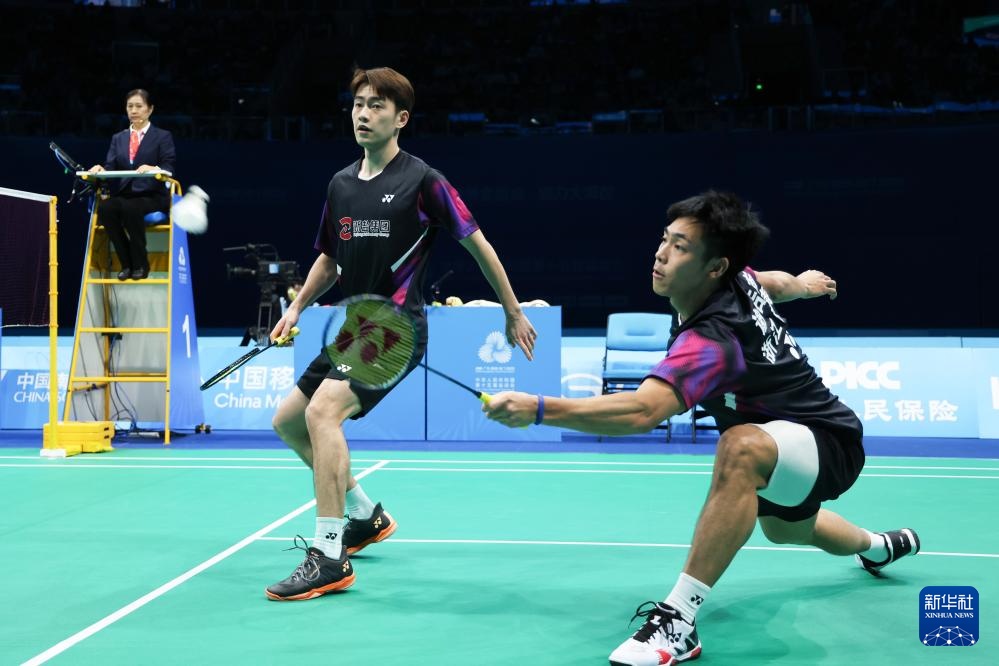 11月20日,浙江队组合王昶/谢浩南(右)在比赛中。