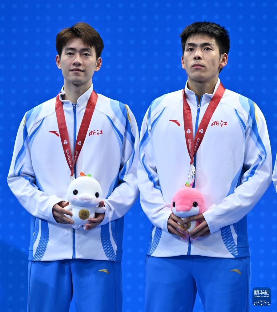 11月20日,亚军浙江队组合王昶(左)/谢浩南在颁奖仪式上。
