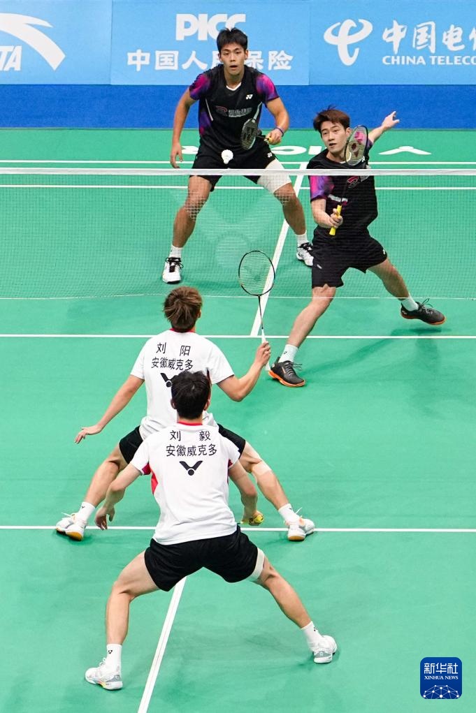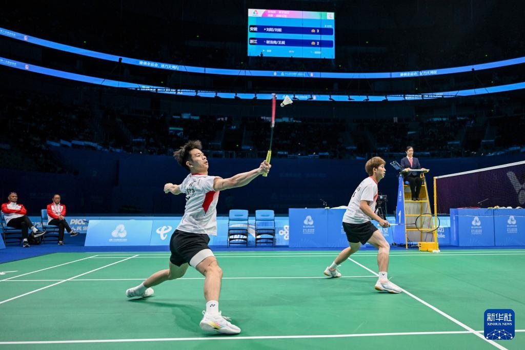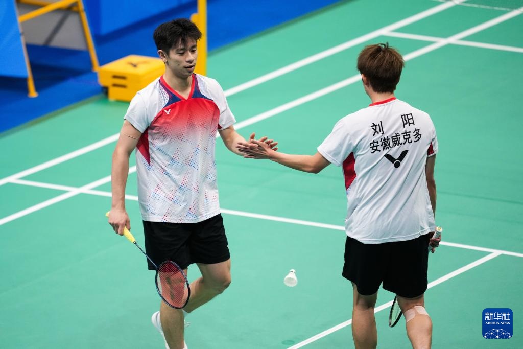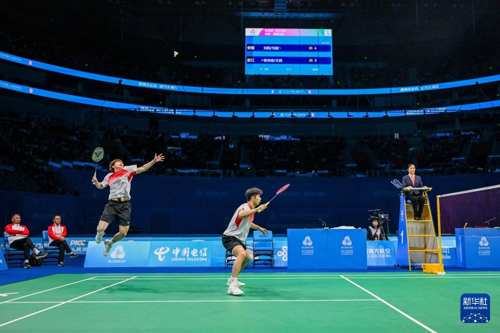 当日,在广东深圳举行的第十五届全国运动会羽毛球男子双打决赛中,安徽队组合刘阳/刘毅2比1战胜浙江队组合谢浩南/王昶,获得冠军。