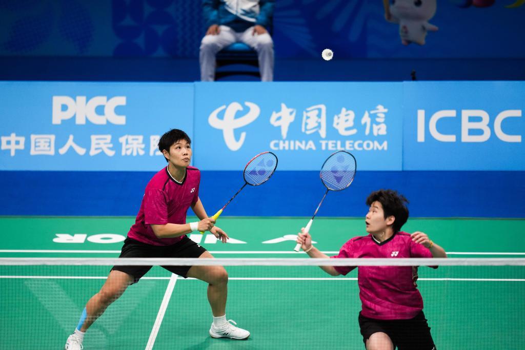 11月20日,福建队组合黄东萍(左)/谭宁在比赛中。新华社记者 陈思汗 摄