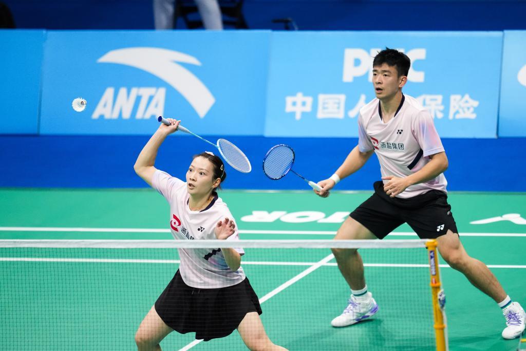 11月20日,浙江队组合郑思维/黄雅琼(左)在比赛中。新华社记者 陈思汗 摄