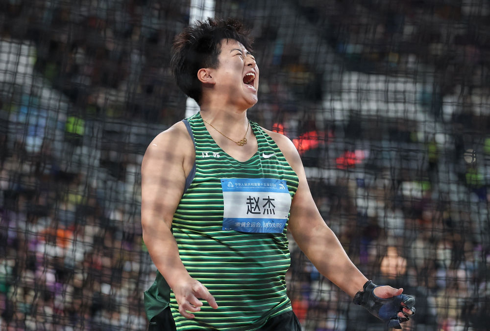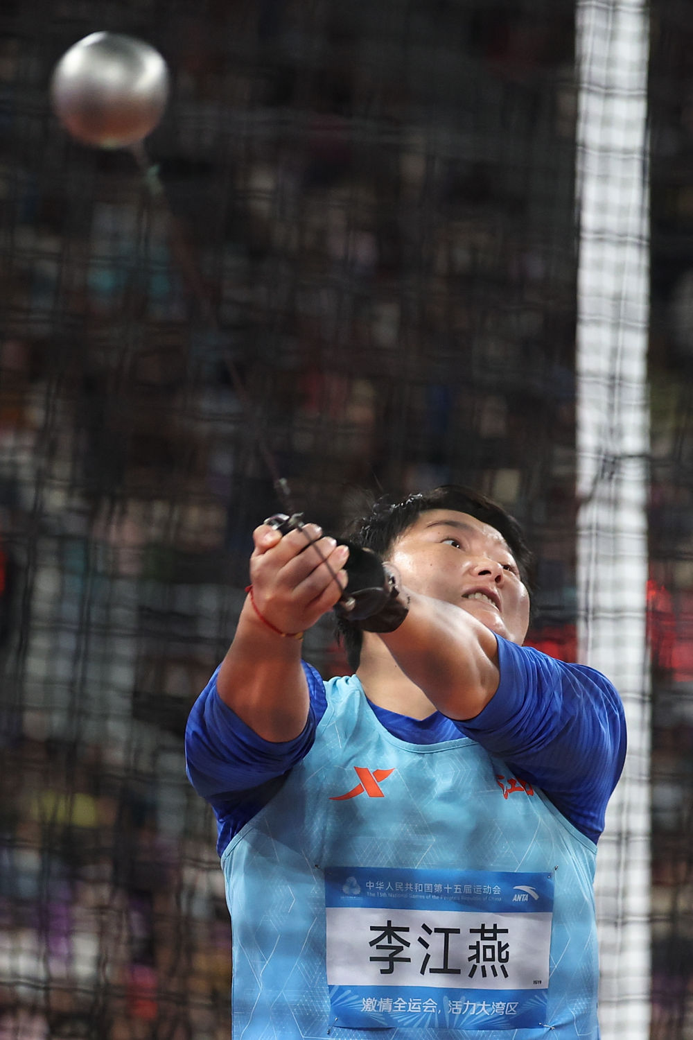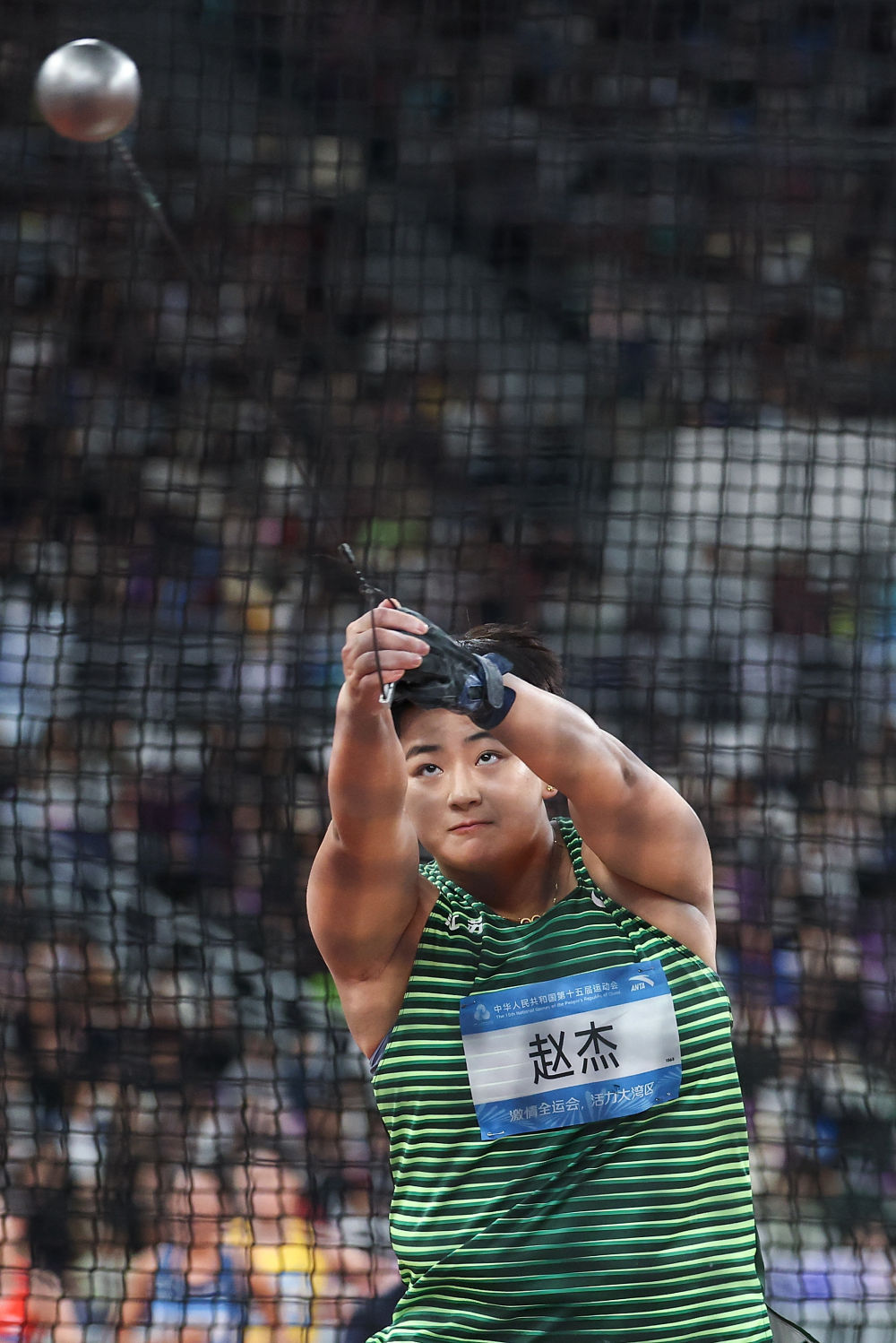 11月20日,第十五届全国运动会田径项目女子链球决赛在广州举行。江苏队选手赵杰获得冠军。