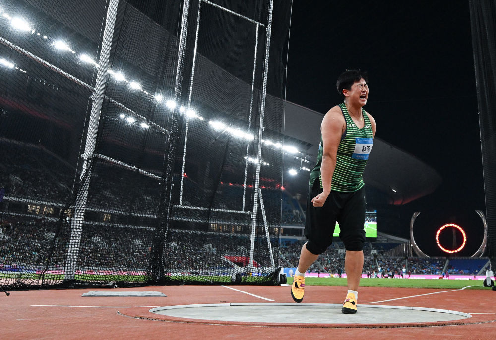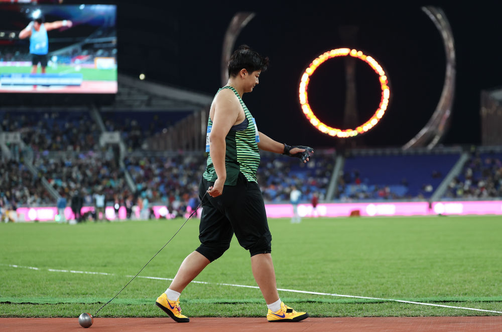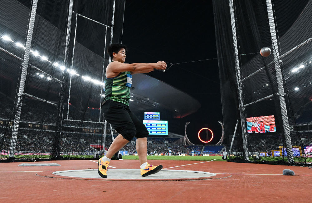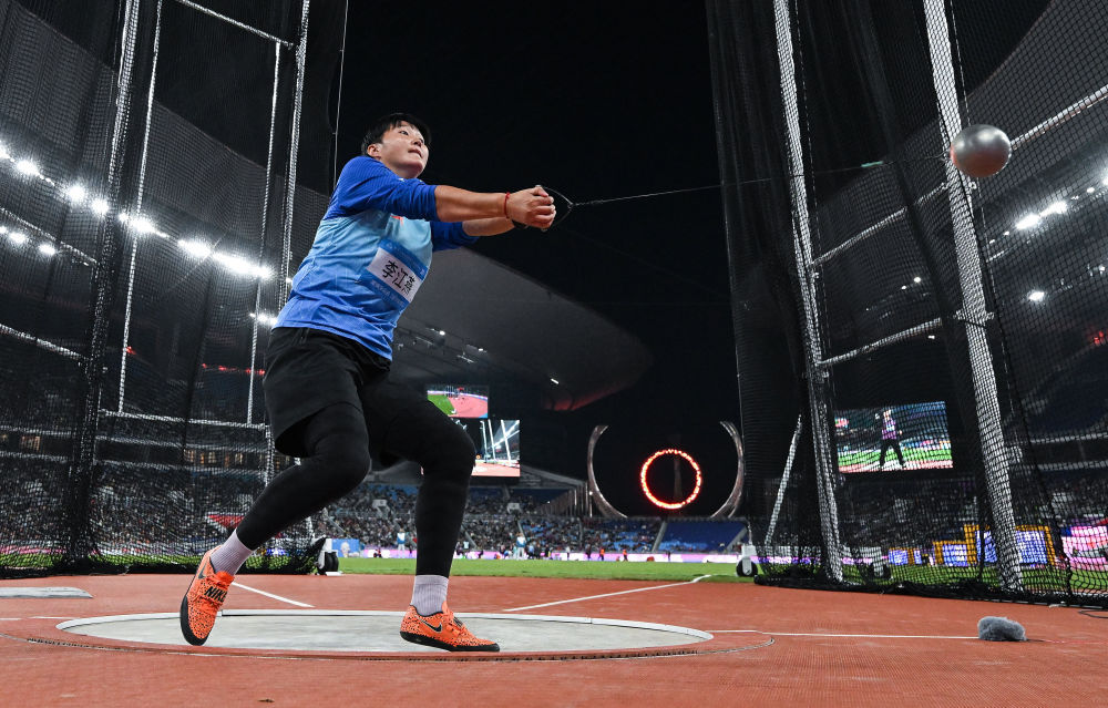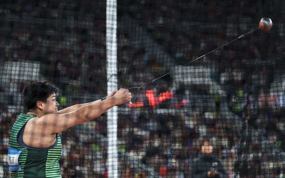 11月20日,第十五届全国运动会田径项目女子链球决赛在广州举行。江苏队选手赵杰获得冠军。
