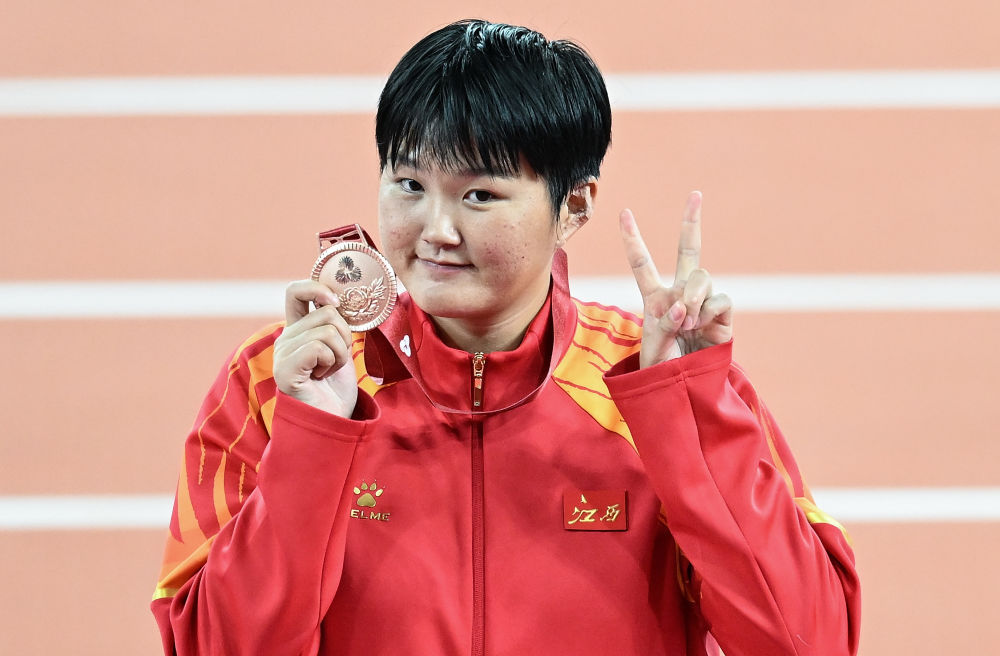 ↑ 季军江西队选手李江燕在颁奖仪式上。 新华社记者 周牧 摄