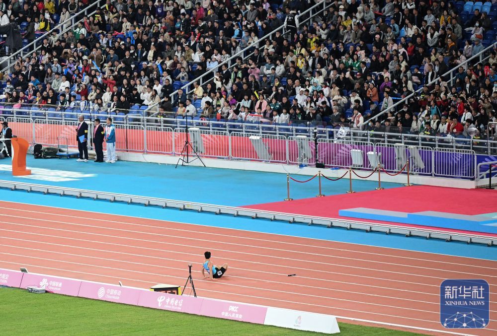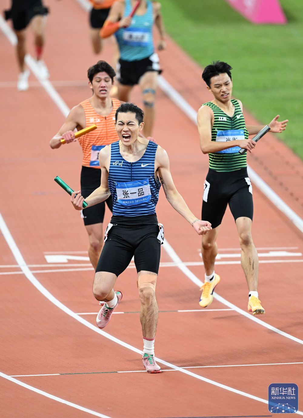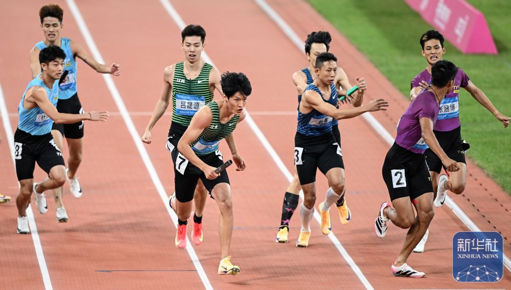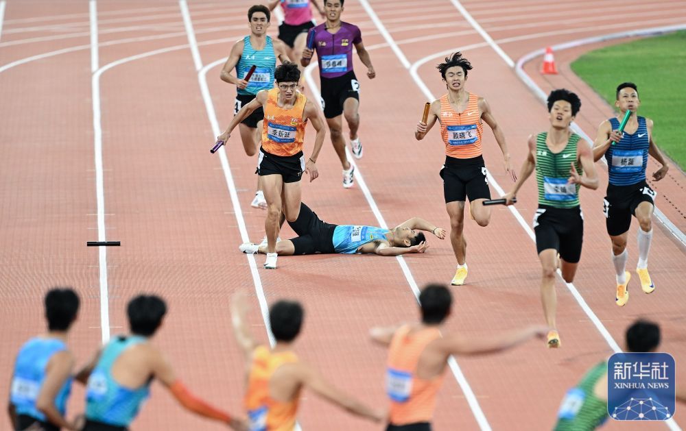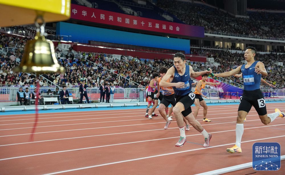 11月20日,第十五届全国运动会田径项目男子4X400米接力决赛在广州举行。
