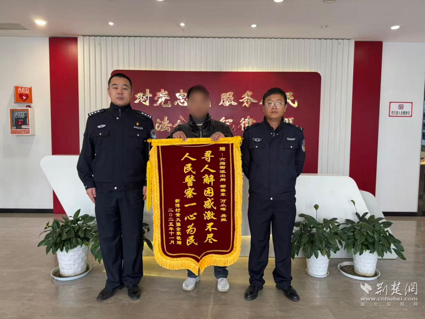 荆楚网(湖北日报网)讯(记者 白云 通讯员 吴雪薇、梅梅)11月12日上午8时36分,长江新区公安分局六街派出所收到一面印着“寻人解困感激不尽,人民警察一心为民”的锦旗,这面锦旗源于黄爹爹一个朴素的心愿——“回老家看看”。