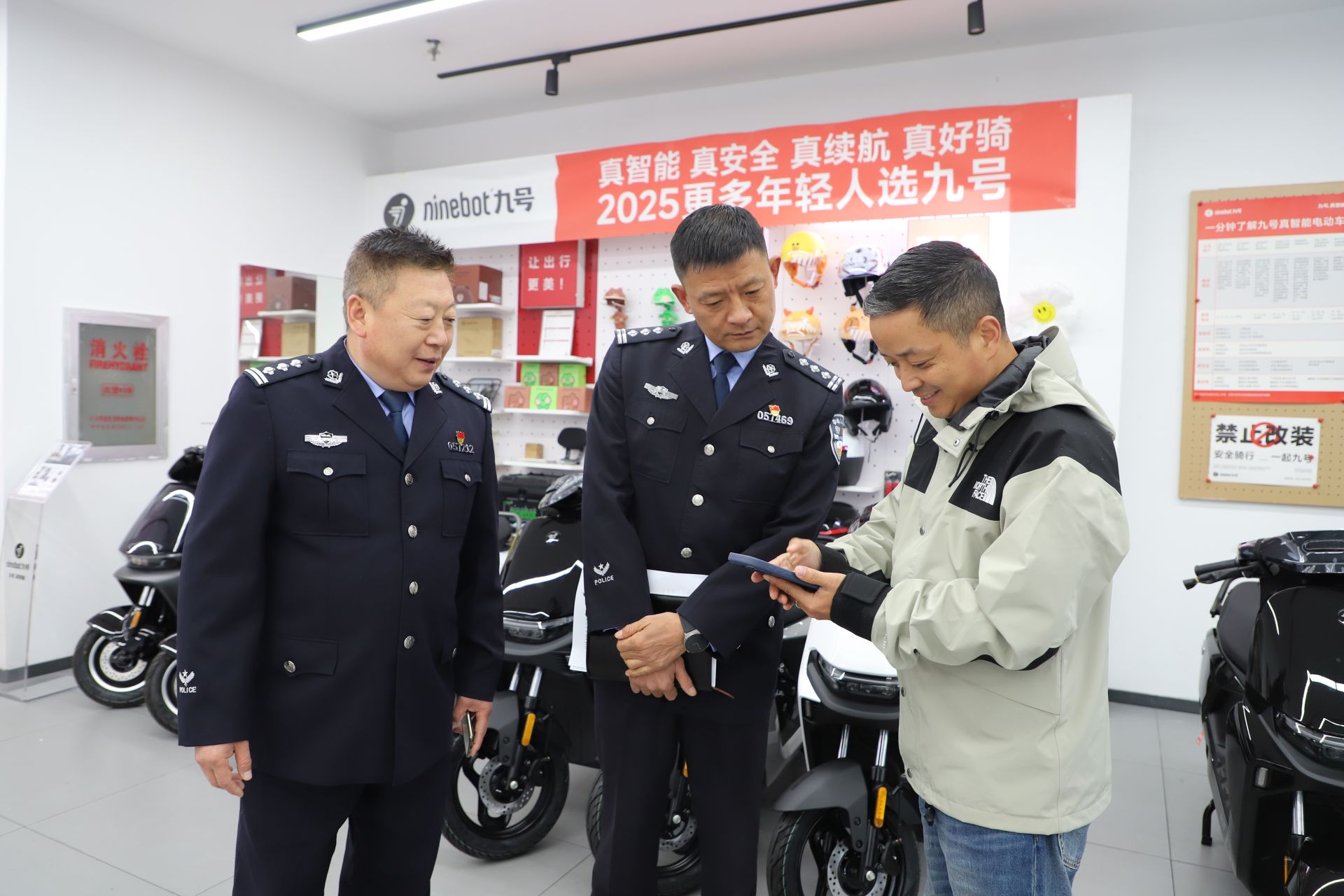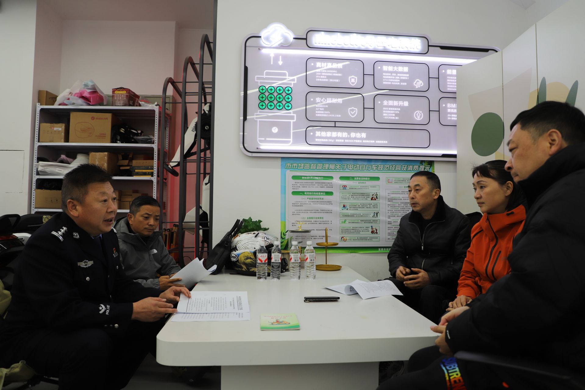 记者在现场看到,民警一边与宜昌电动车行业协会负责人交换新国标电动自行车登记管理情况,一边向来店购买车辆的市民宣讲电动自行车新国标。为加强电动自行车交通安全管理,推动全市电动自行车规范管理提质升级,确保强制性国家标准《电动自行车安全技术规范》(GB17761—2024)登记体系全面落地。11月中旬以来,宜昌市公安局交通管理支队车管所联合市场监督管理局、行业协会及相关技术企业,通过突击检查、系统升级与专题部署等一系列举措,全面推进电动自行车登记管理规范化建设,着力构建“全链条监管、全方位服务、全领域宣传”的综合管理体系。