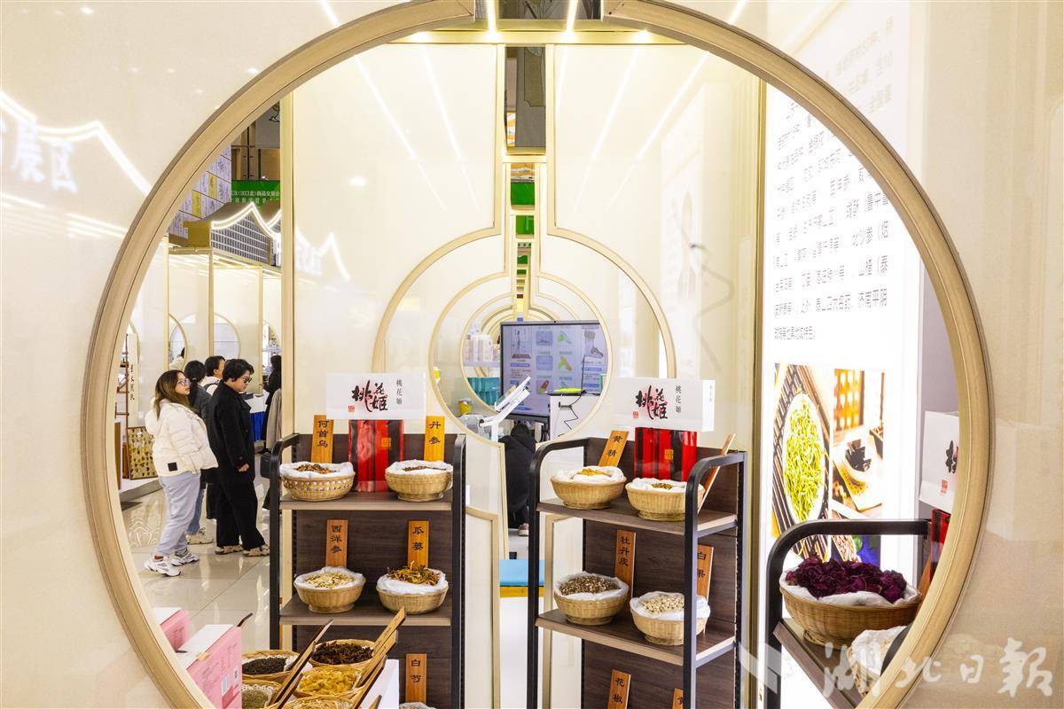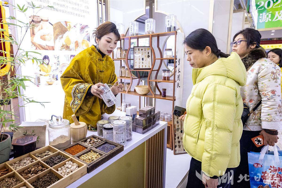 图为汉交会药食同源展区,参观者了解不同养生产品。