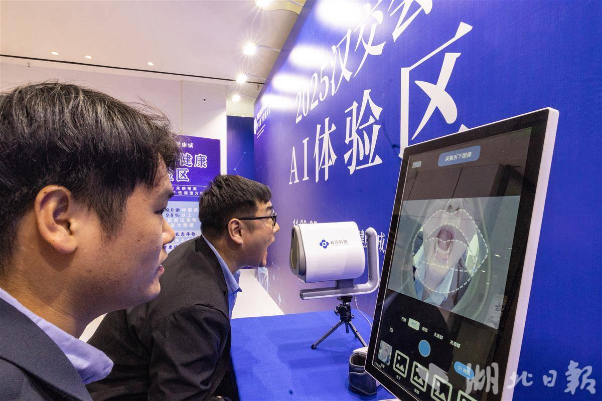 11月20日,2025汉交会药食同源展区,参观者通过AI系统“刷脸”辨体质,生成含调理建议的电子报告。展区汇聚中药材、药妆等20大品类,300余个展位覆盖“原料——产品——服务”全产业链,创新融合AI科技与传统养生,打造大健康生态平台。(湖北日报全媒记者 倪娜 通讯员 黄宣 刘春 摄)
