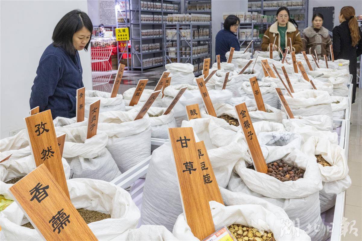 图为汉交会药食同源展区,参观者选购各类中药材。