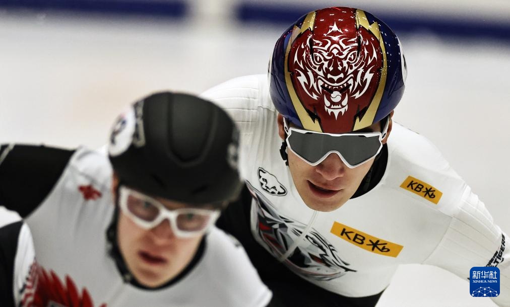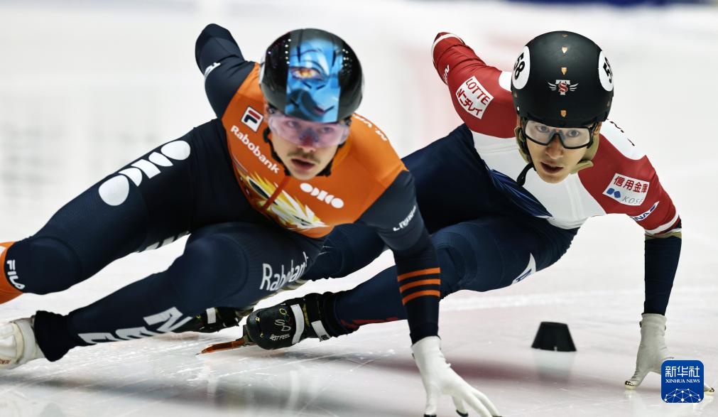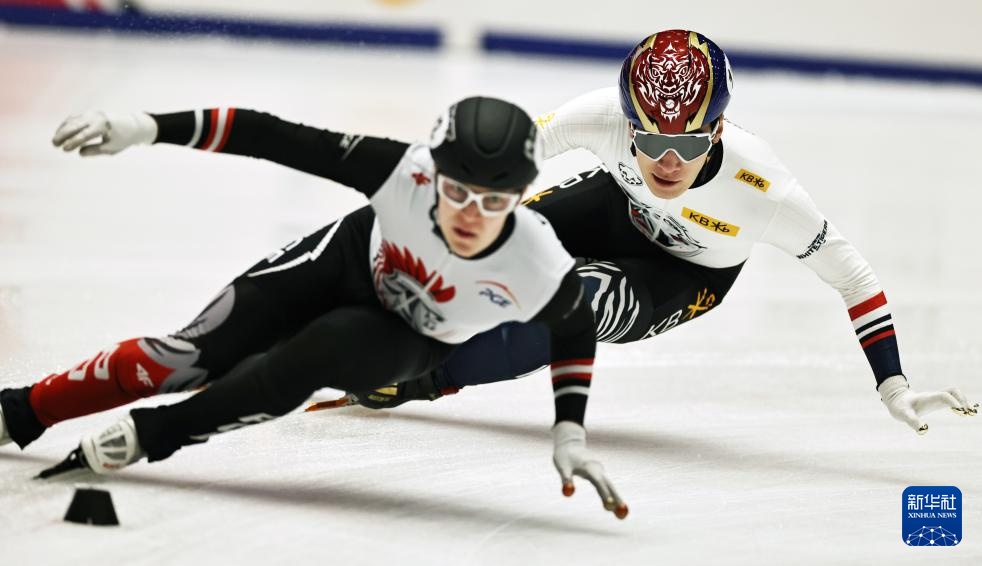 11月20日,韩国队选手黄大宪(右)在比赛中。最终,韩国队以2分45秒792的成绩晋级半决赛。
