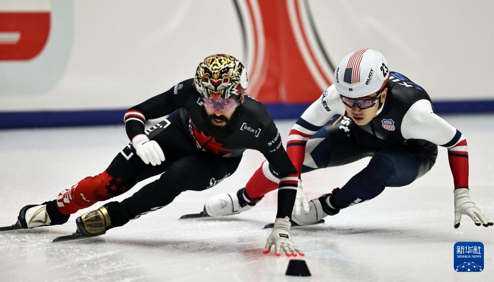 11月20日,加拿大队选手萨罗尔特(左)在比赛中。最终,加拿大队以2分41秒818的成绩晋级半决赛。