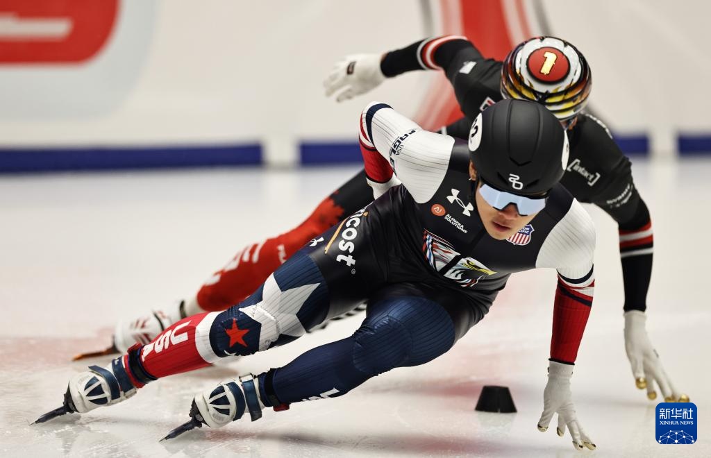 11月20日,美国队选手安德鲁·希奥在比赛中。美国队以2分42秒199的成绩晋级半决赛。