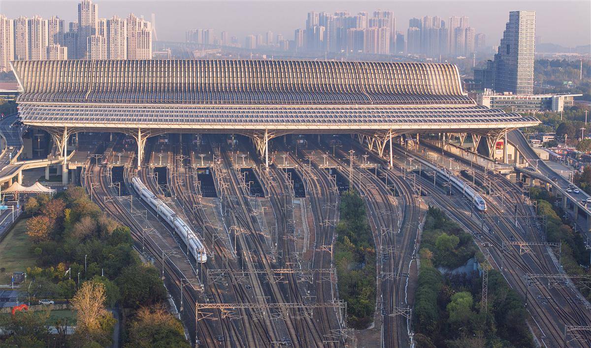 11月21日清晨,笼罩在薄薄晨雾中的武汉站一派繁忙景象,