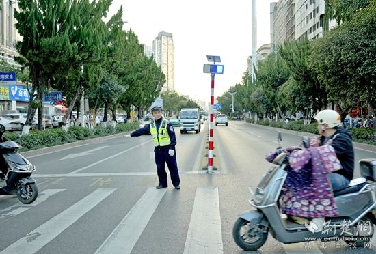 “娃儿要迟到了,别耽误事,快让开!”11月20日7时许,李超在执勤时,拦下了一位骑电瓶车送孩子没有佩戴头盔的家长。