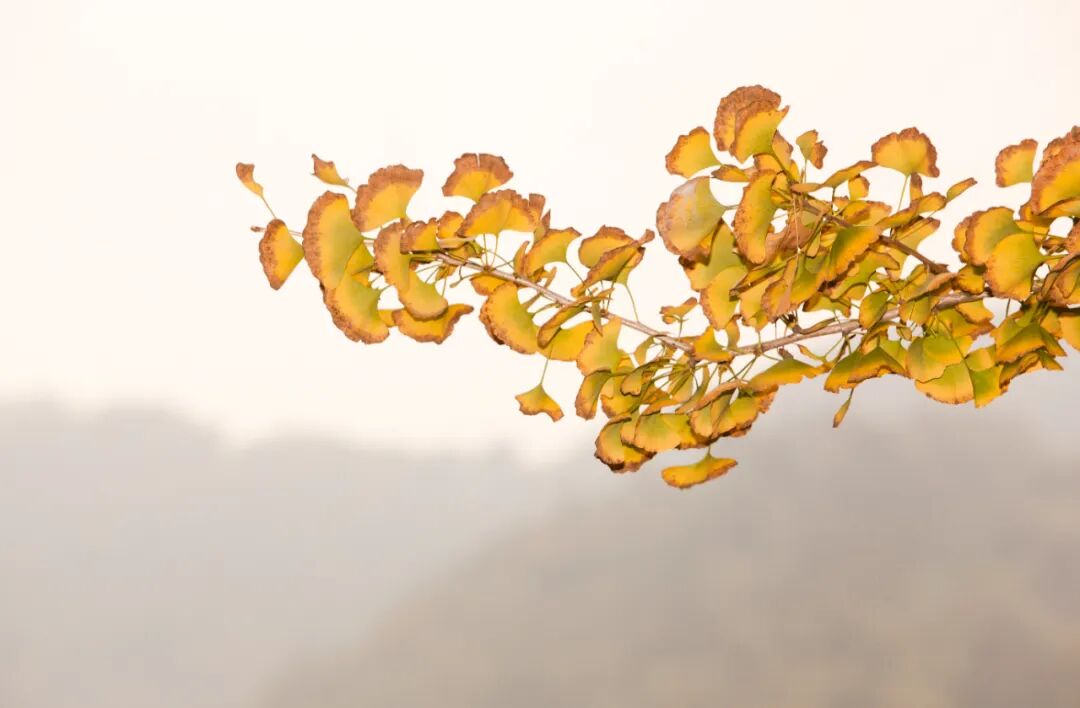 深秋开始泛黄的银杏叶