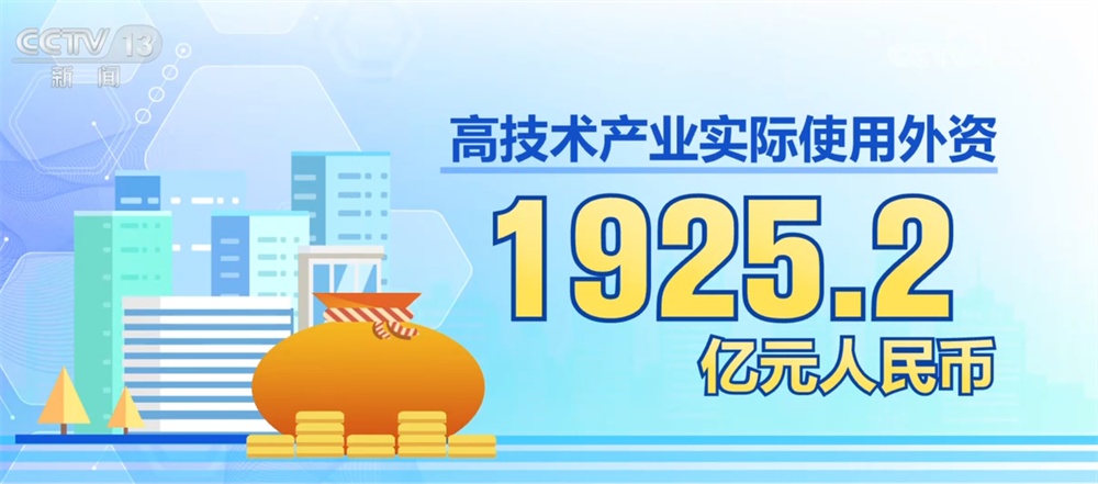 高技术产业实际使用外资1925.2亿元人民币,其中,电子商务服务业、医疗仪器设备及器械制造业、航空航天器及设备制造业实际使用外资分别增长173.1%、41.4%、40.6%。