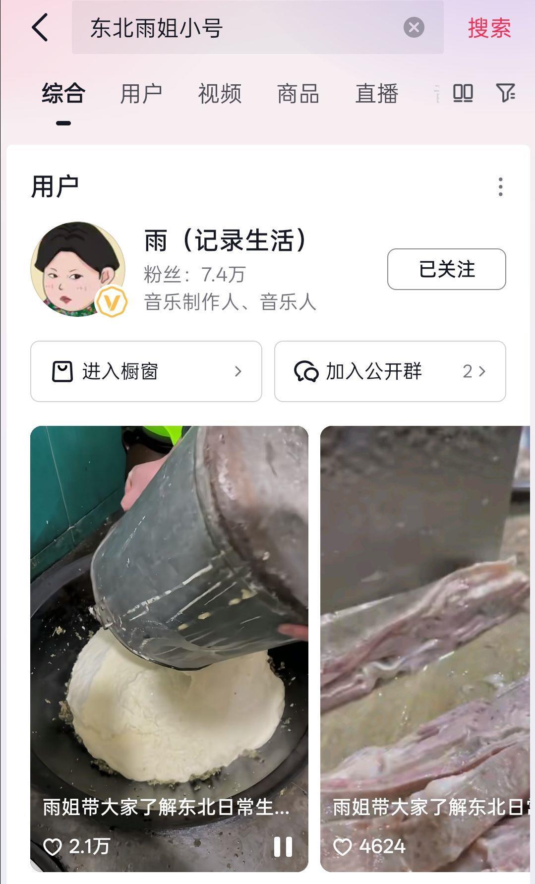 在短视频平台搜索“东北雨姐”小号,该账号赫然出现