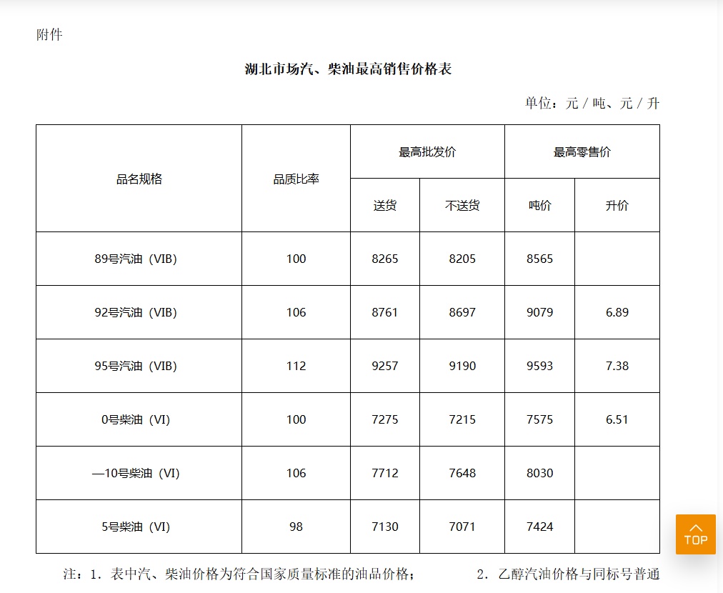 省发改委发布我省油价调整通知
