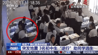 2025年10月11日11时18分,云南省昭通市鲁甸县发生4.8级地震,鲁甸县第一中学4700多名师生在50秒内完成疏散。上面的视频,是地震发生时,初二鹏程1班同学们的撤离片段。