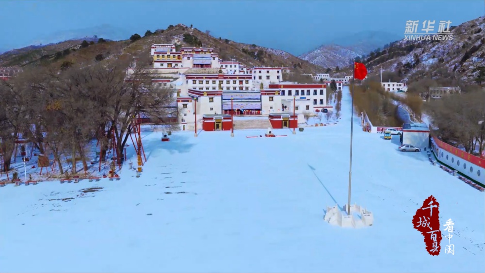 阳光穿透薄雾洒向雪地,折射出澄澈光影。半山银装素裹,半山苍翠依旧,藏式建筑群与自然景致交相辉映,勾勒出一幅兼具历史底蕴与自然之美的冬日画卷。