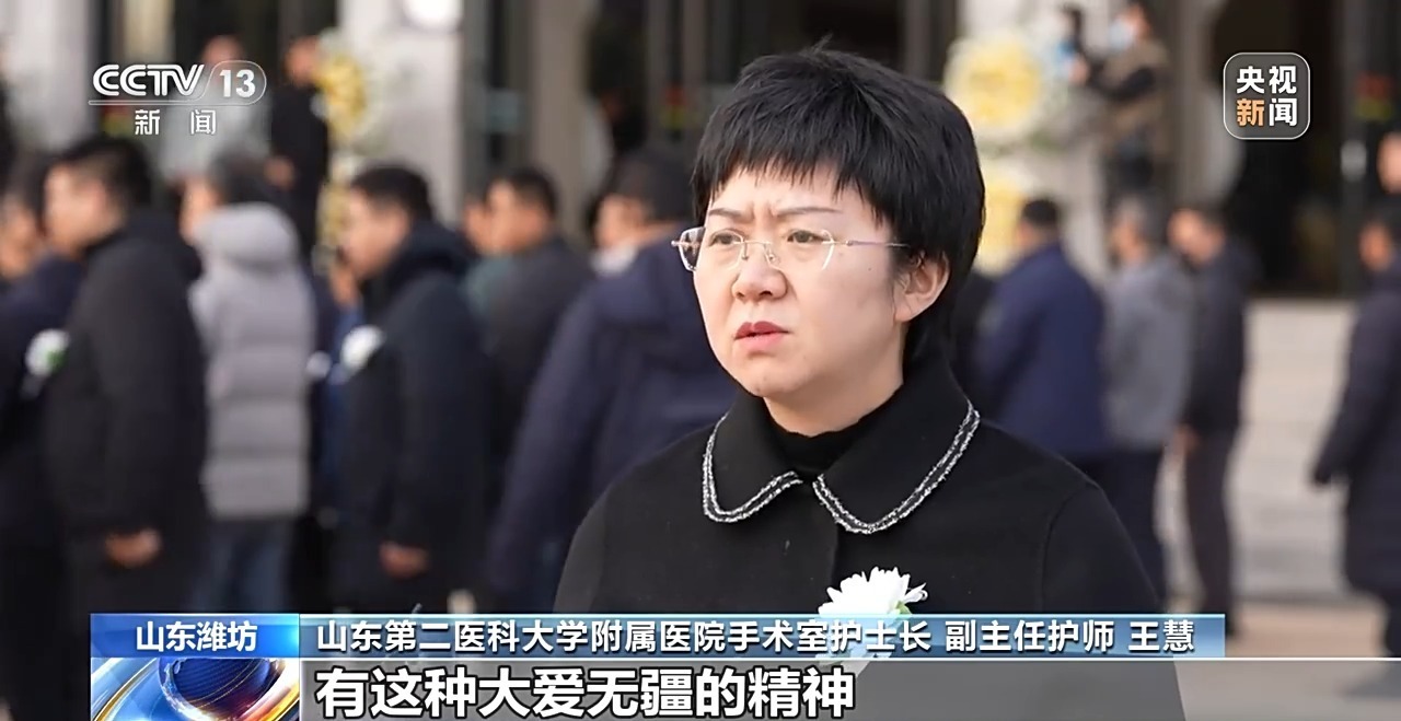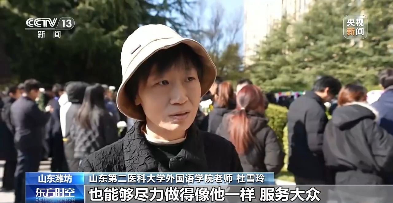 山东第二医科大学外国语学院老师 杜雪玲:像失去亲人一样很难过,我们都觉得大家必须来,一定要来送送他,然后把这种精神带给自己,把自己平时的工作也能够尽力做得像他一样,服务大众。